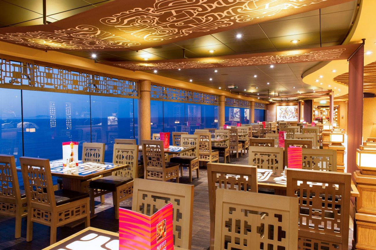 2 основни ресторанта, 2 бюфет ресторанта, Butcher`s cut – американски стек хаус, суши ресторант, 9 бара на закрито и 3 на откритите палуби, дискотека.