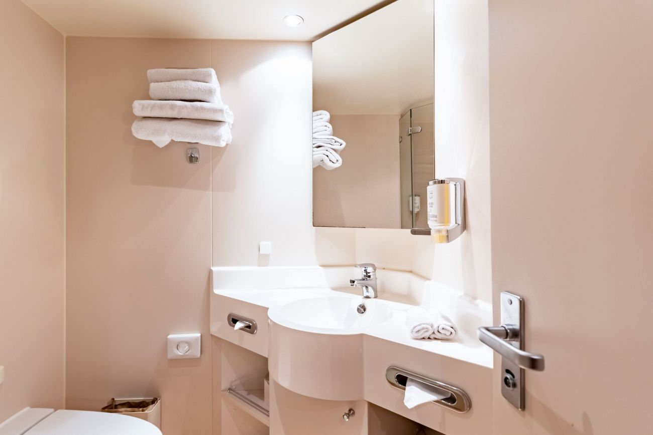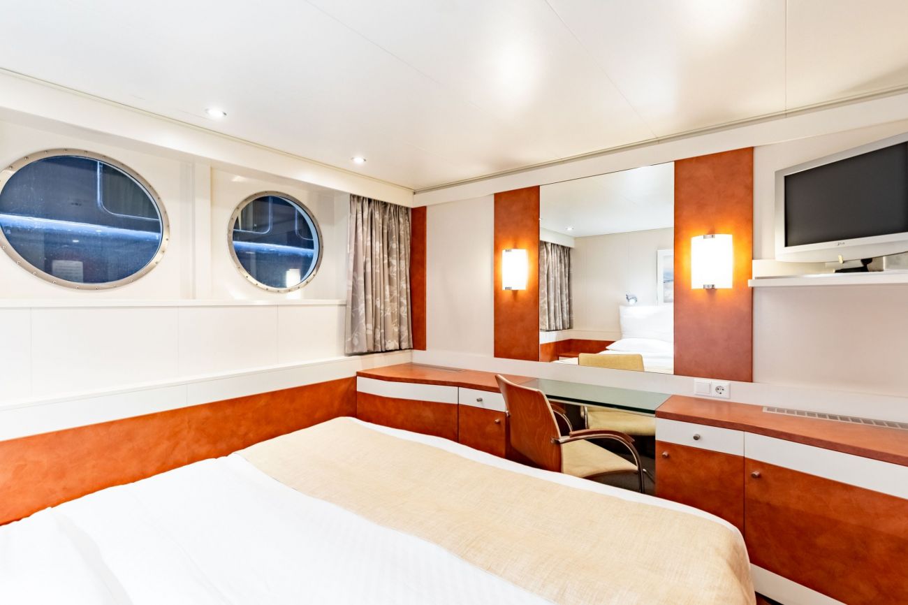 Каютите са с площ от 14 м2 и разполагат с индивидуален климатик, сателитна ТВ, сешоар, сейф, малък хладилник, баня и тоалетна.