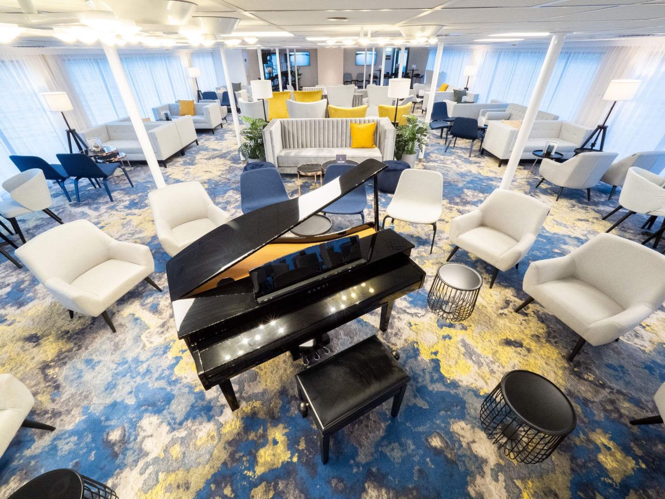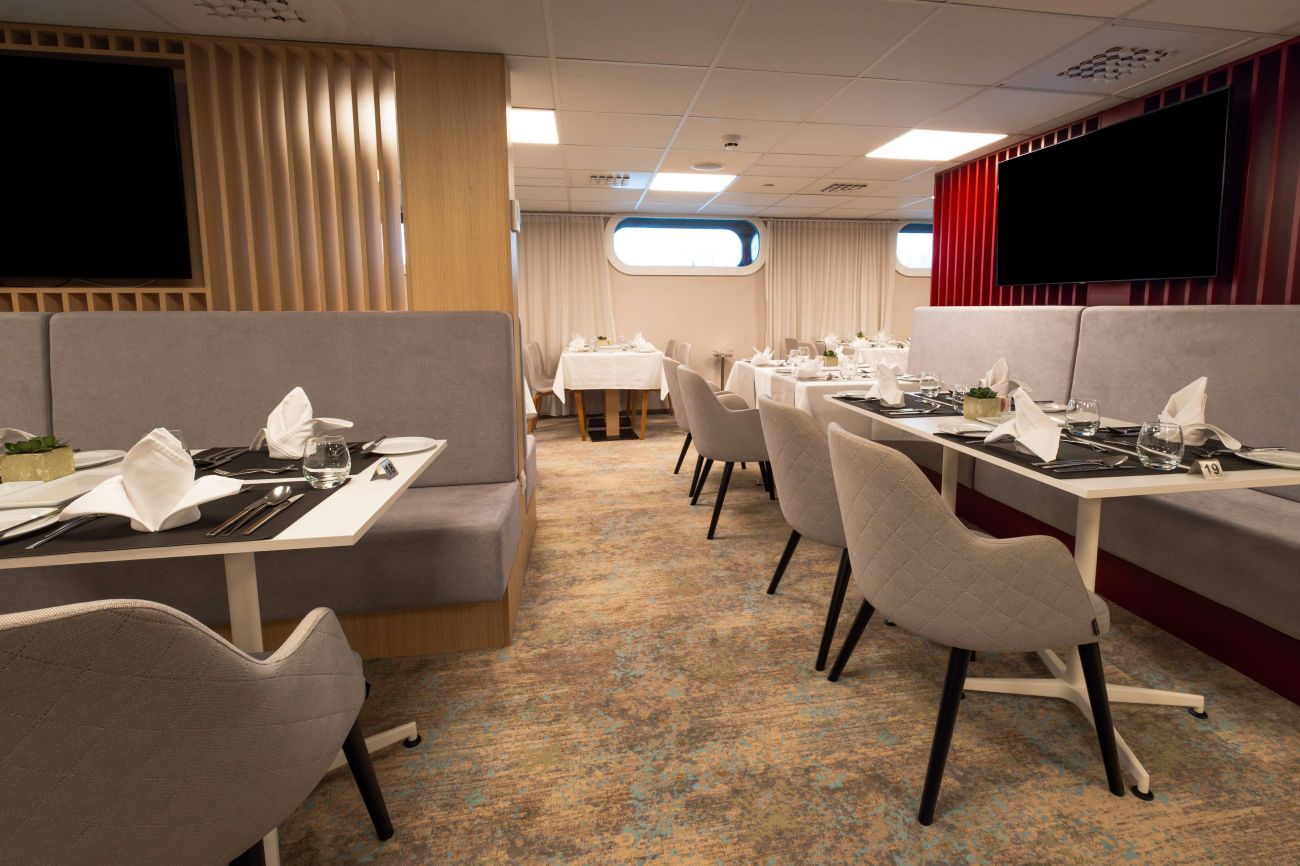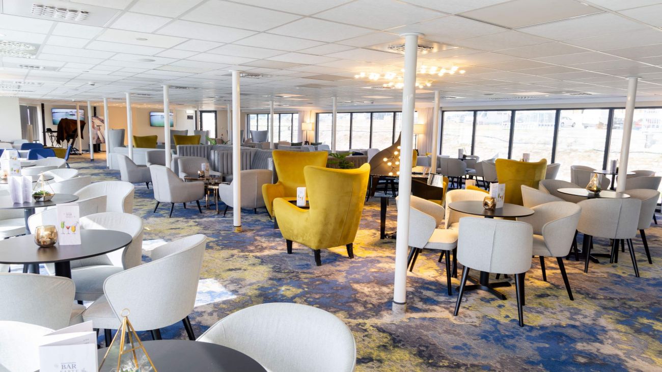 На борда ще намерите панорамен салон с бар, бар на кърмата, ресторант на основна палуба, голяма слънчева палуба с места за сядане, асансьор.