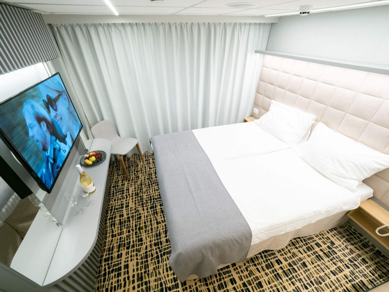 Всички каюти са с индивидуален климатик, сателитна телевизия, вътрешен телефон, мини бар, сешоар, сейф.