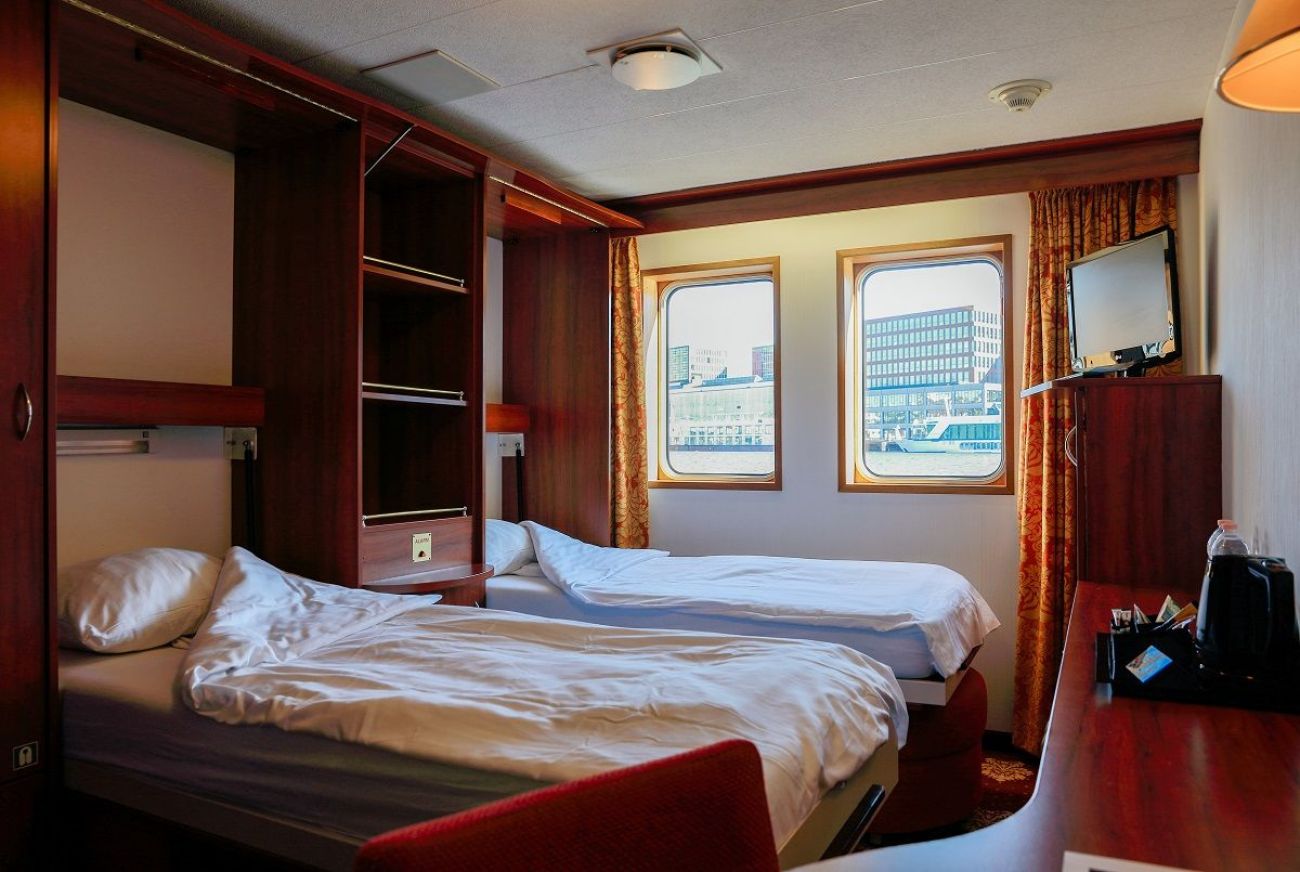 Каютите на основна палуба са с легла, които през деня се вдигат и превръщат в удобни места за сядане. Всички те са с прозорци.