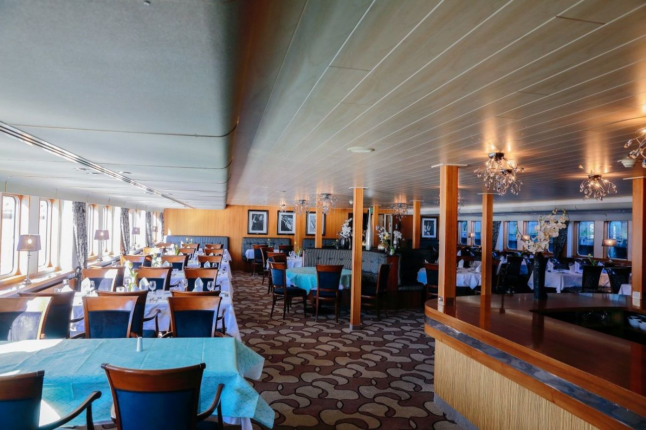 Корабът разполага с 3 палуби, капацитетът е 110 гости.