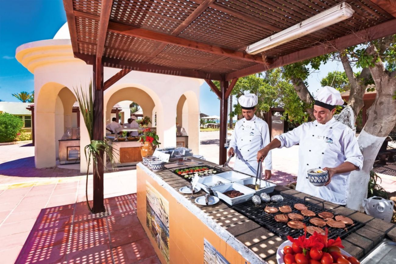 Основен ресторант, ресторант на плажа (само във висок сезон), платен а ла карт ресторант Le Voilier с международна кухня (1 безплатно посещение на престой, след предварителна резервация, само във висок сезон), лоби бар Le Patio, бар басейн, плажен бар, мавританско кафене (срещу заплащане), нощен бар Blue Dolphin bar (срещу заплащане), 2 открити басейна, 1 открит басейн само за възрастни, 1 закрит басейн (отопляем през зимата), анимация, музика на живо, 24 часова рецепция, сувенирен магазин, обмяна на валута, голф игрище.