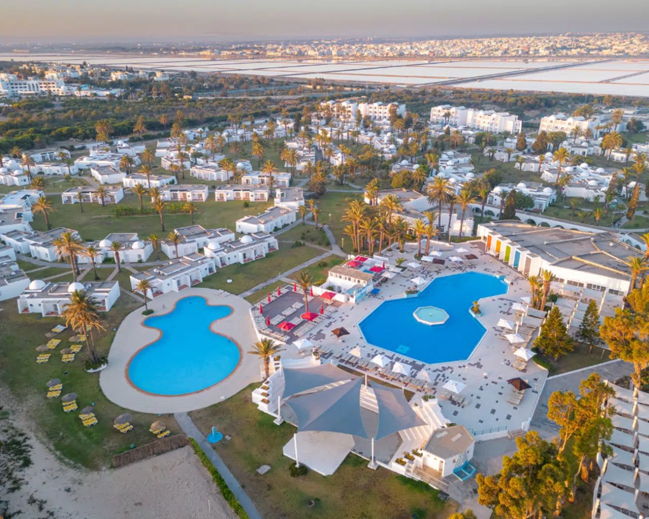Основен ресторант с детски бюфет, снак бар Express, а ла карт ресторант със средиземноморска кухня (платен, едно безплатно помещение на престой, след предварителна заявка), а ла карт ресторант с тунизийска храна (платен, едно безплатно помещение на престой, след предварителна заявка), а ла карт ресторант с морска храна (платен, едно безплатно помещение на престой, след предварителна заявка), основен бар, бар басейн, плажен бар, аква парк бар, външен басейн, външен басейн за гости над 16+, вътрешен басейн, аква парк включващ басейн с 9 водни пързалки и "мързелива" река, 24 часова рецепция, СПА център, сувенирен магазин, 2 тенис корта.