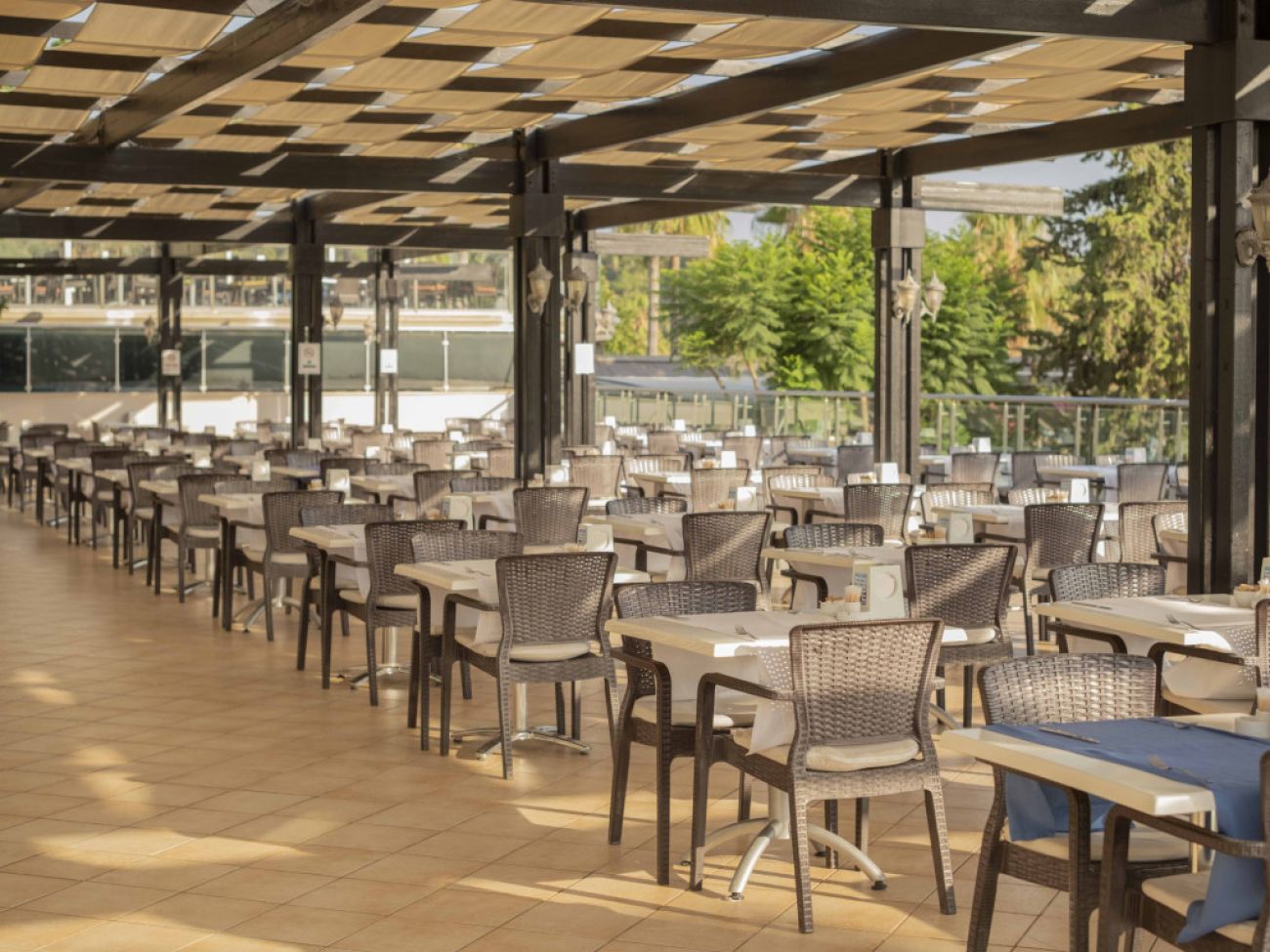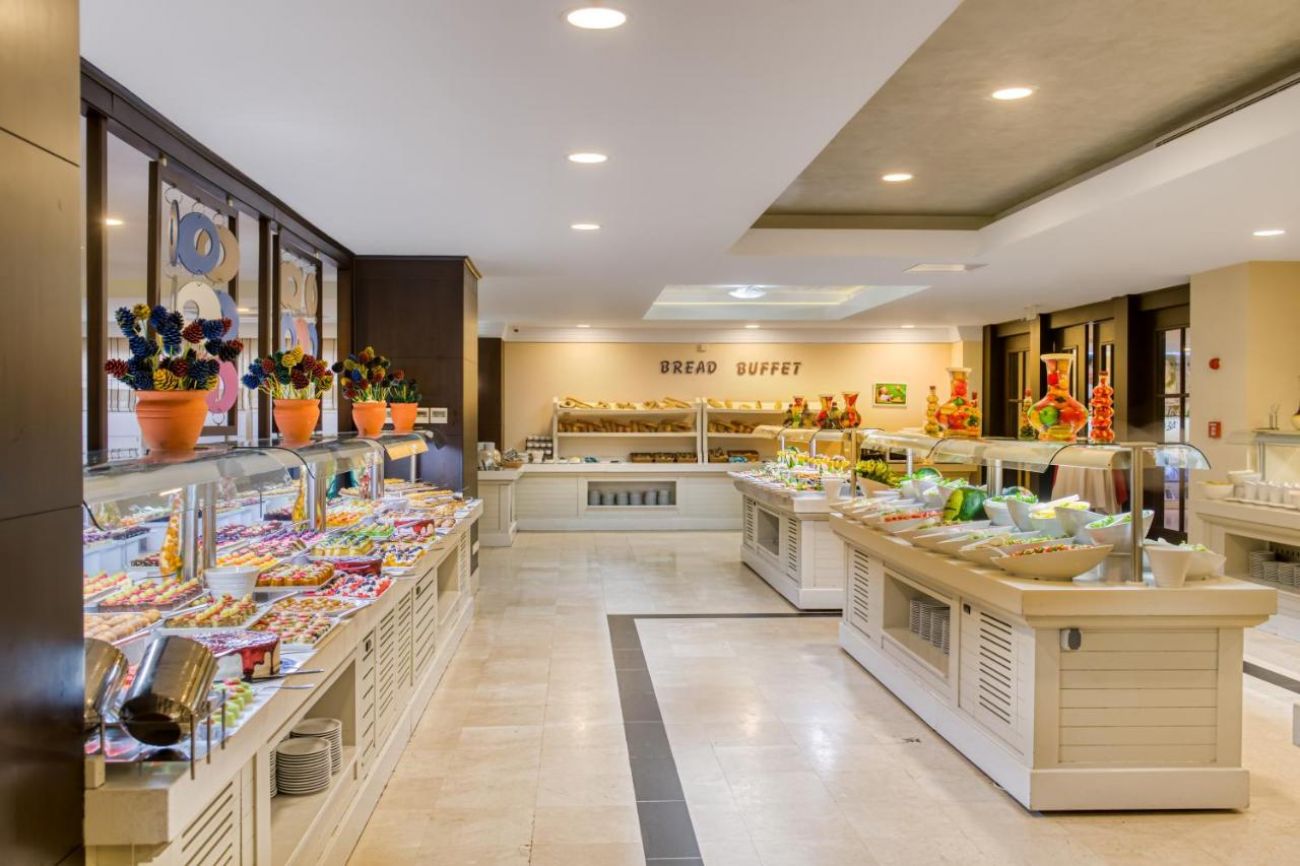 Основен ресторант, 2 а-ла-карт ресторанта (турски и италиански - 1 безплатно посещение на 1 от ресторантите при минимум 7 нощувки), снек бар, гьозлеме, сладкарница, 4 бара, диско бар, 3 открити басейна, водни пързалки, конферентна зала, СПА център, магазини.