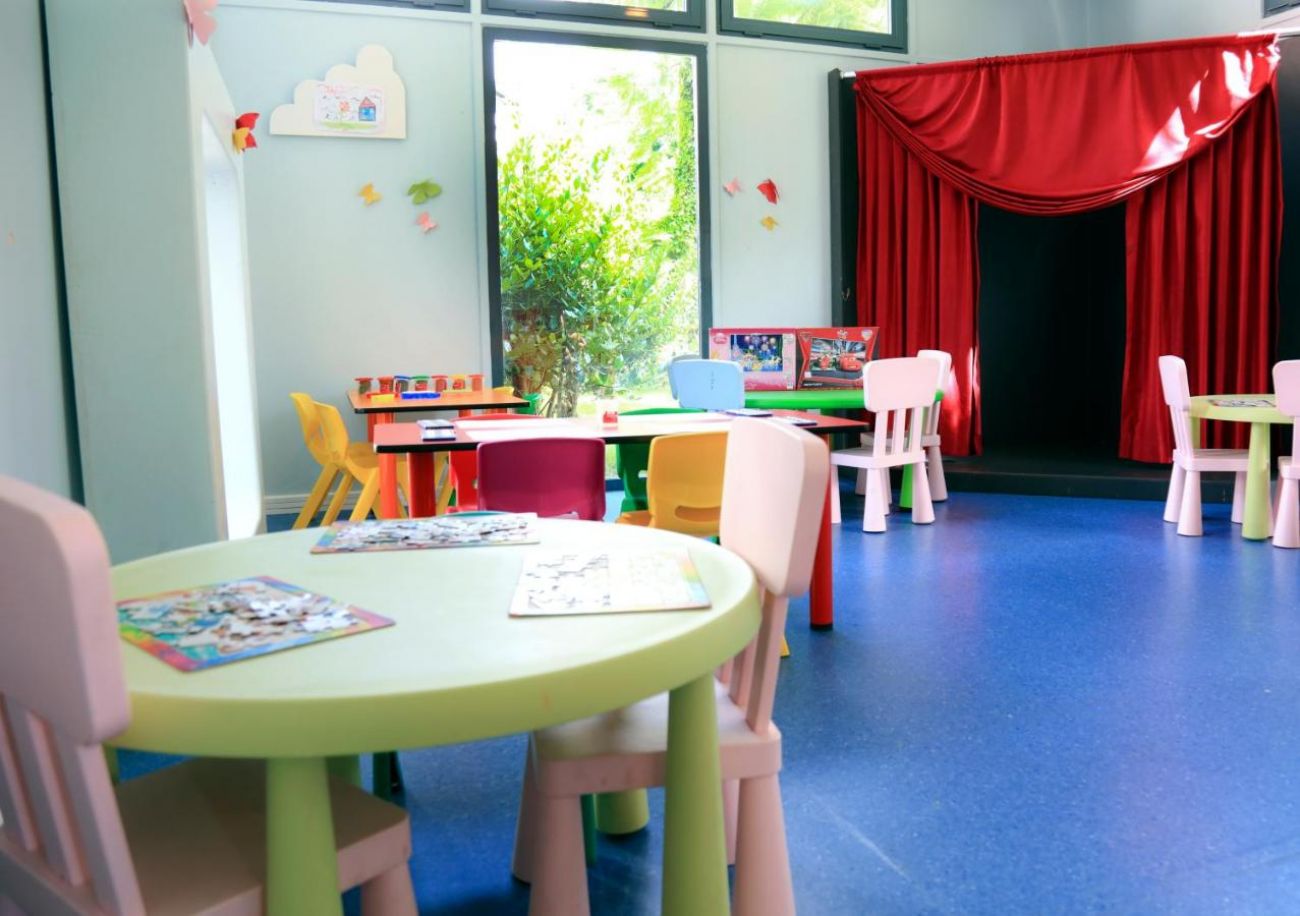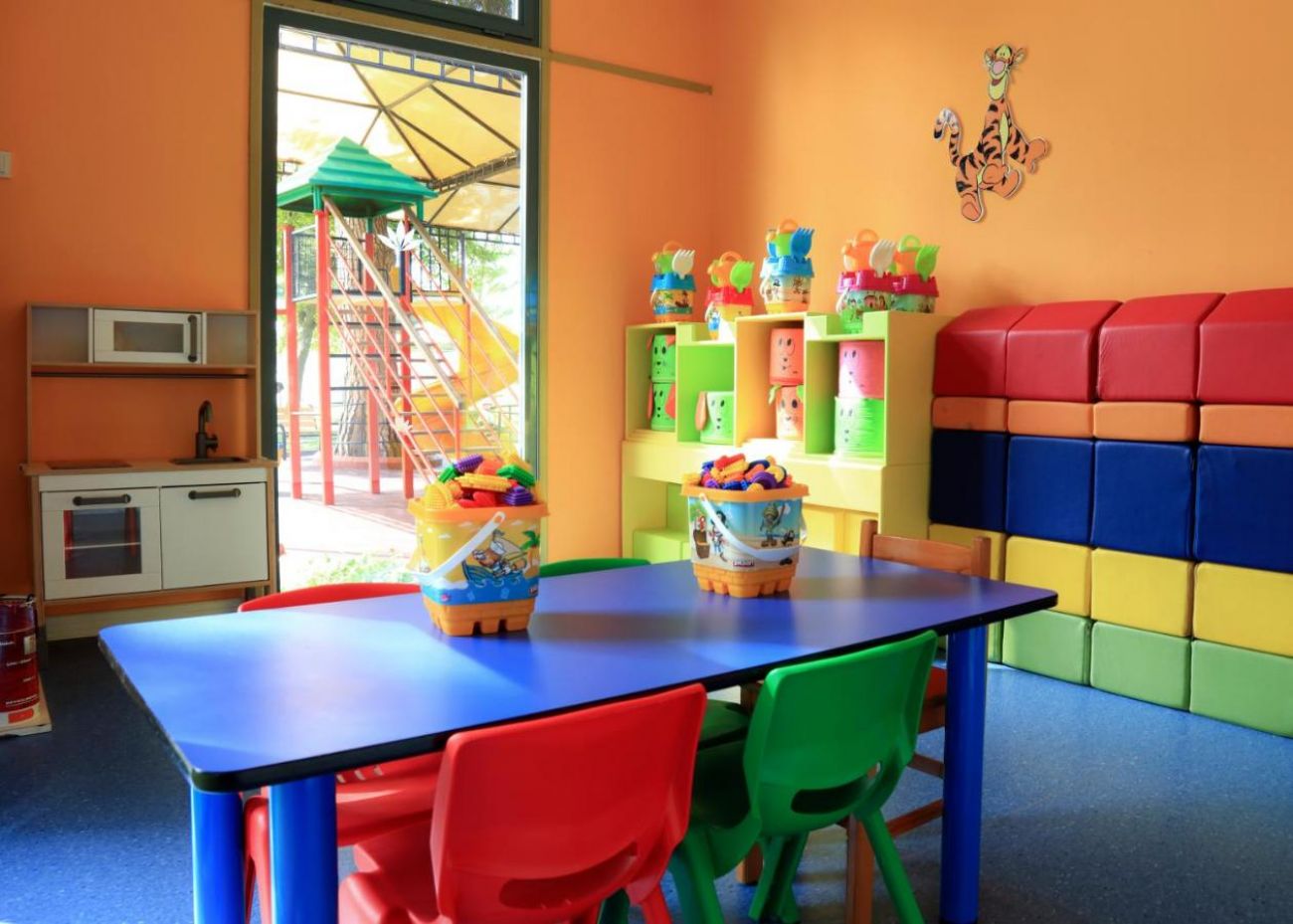 За децата: 2 детски басейна, мини глуб (4-12 г.), детски столчета, пързалки.