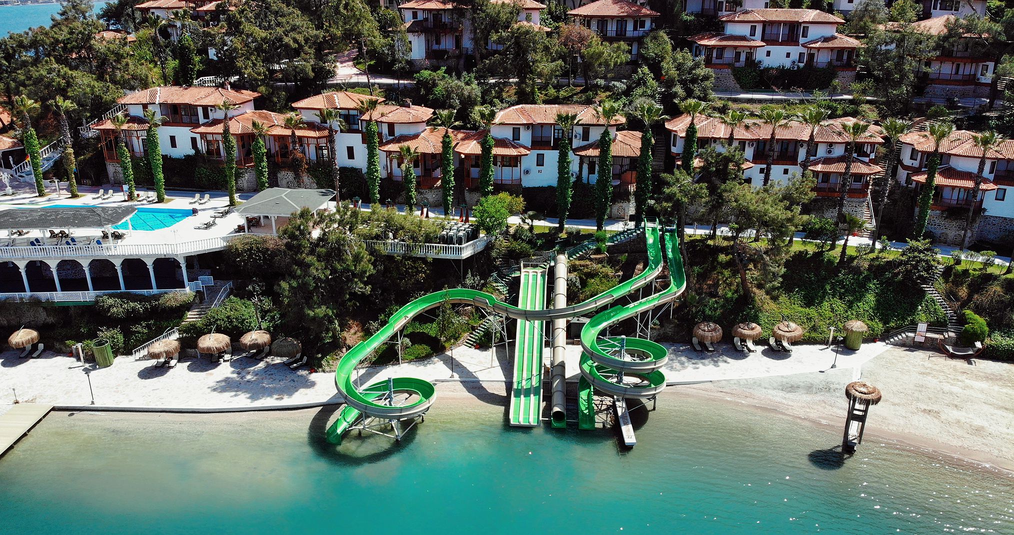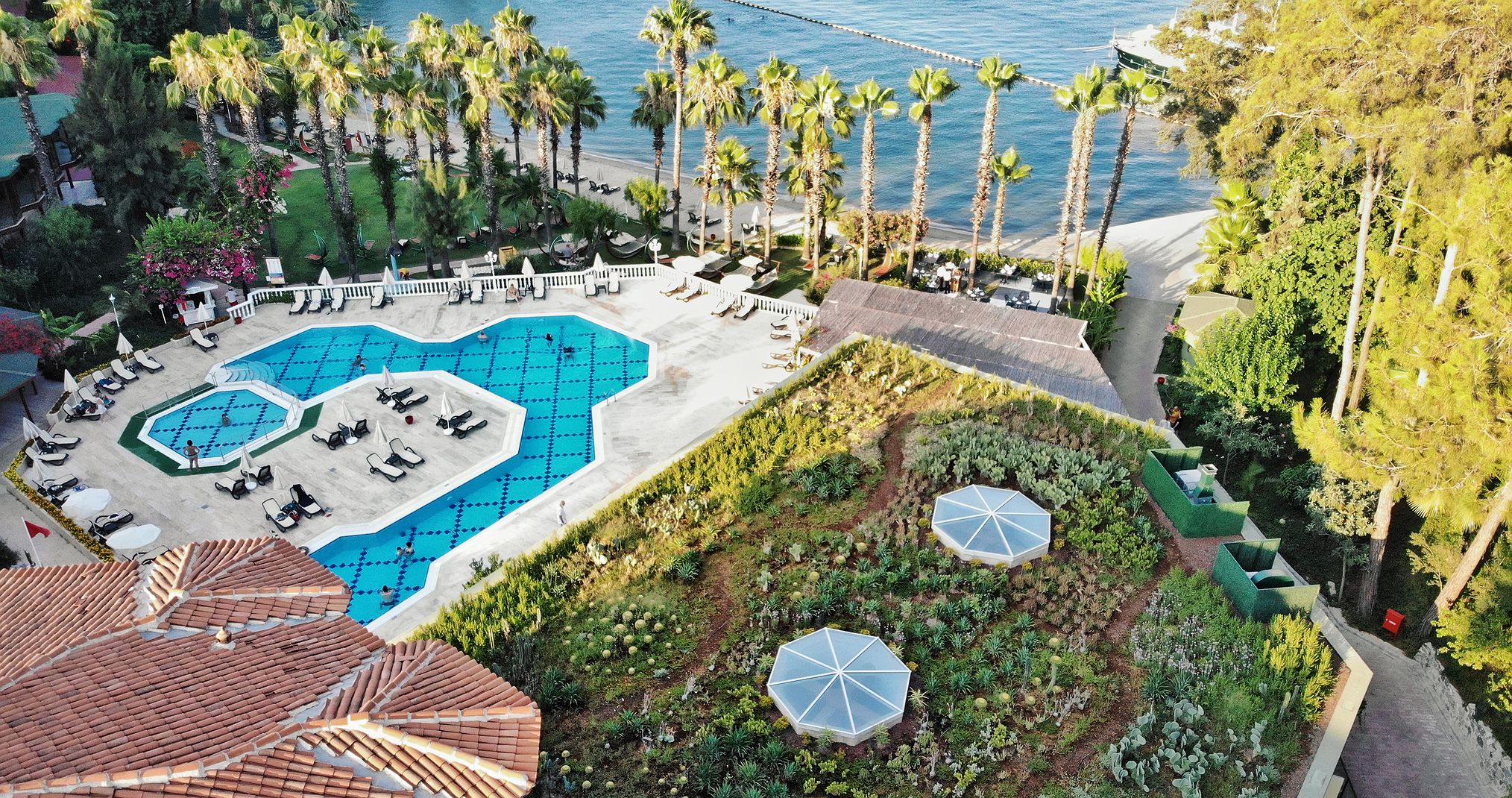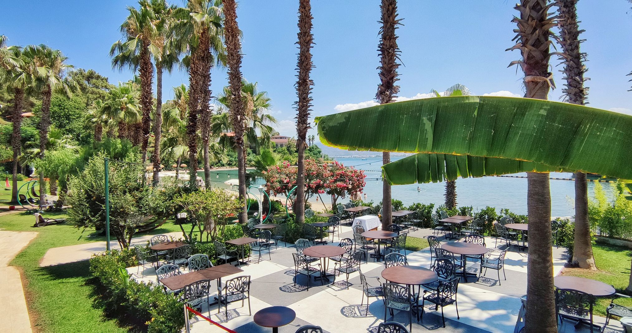 3 ресторанта на шведска маса (основен Cactus Restaurant, Lykia Restaurant и Moonlight Restaurant), 3 а-ла карт ресторанта (всички те са с предварителна резервация, срещу заплащане), 4 снек ресторанта; 9 бара, 3 открити басейна, (всеки с отделна детска секция ), 2 детски басейна (единия от тях с водни пързалки), 3 водни пързалки (завършват в морето), конферентна зала, 4 асансьора до по-високите бунгала, зала за игри, частно яхтено пристанище с капацитет 30 яхти (срещу заплащане).