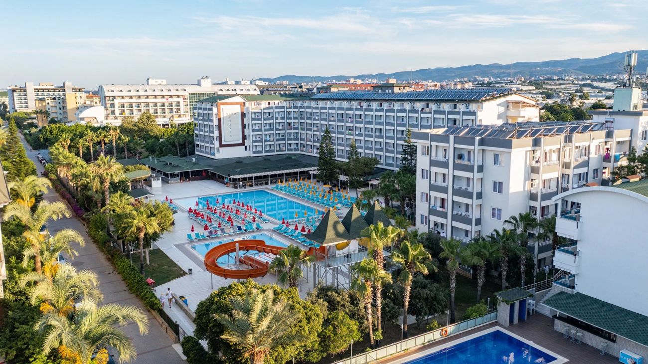 Намира се на 110 км от летище Анталия, на 120 км от центъра на Анталия, на 12км от центъра на Алания, на 1 км от селището Конаклъ, на брега на морето. Построен 2005 г. на обща площ от 17 000 м2. Последно реновиран 2021г.