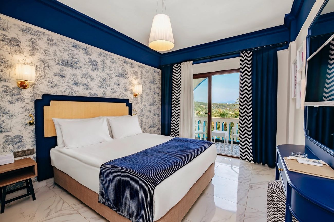 Стаи Main Building: Standard room land view (изглед суша - 24,8 м2), Standard room sea view (изглед море - 24,8 м2), Family Room (2 спални, баня - 39,68 м2).