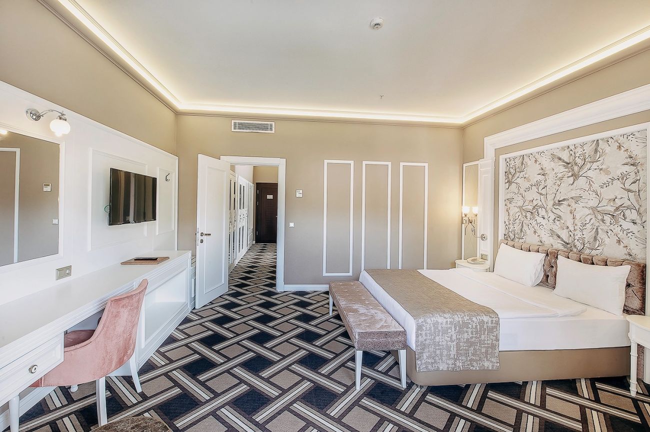 Хотелът разполага с общо 371 стаи, разположени в 1 основна сграда, 4 допълнителни сгради и 1 Residence сграда, от които Standard Garden View (с изглед градина - 26 м2), Standard Sea View (с частичен изглед море - 26 м2), Family Room (2 отделни спални, 1 баня - 43 м2), Residence Family Room (разположени в сграда Residence, 2 отделни спални, дневна, 1 баня - 49 м2).