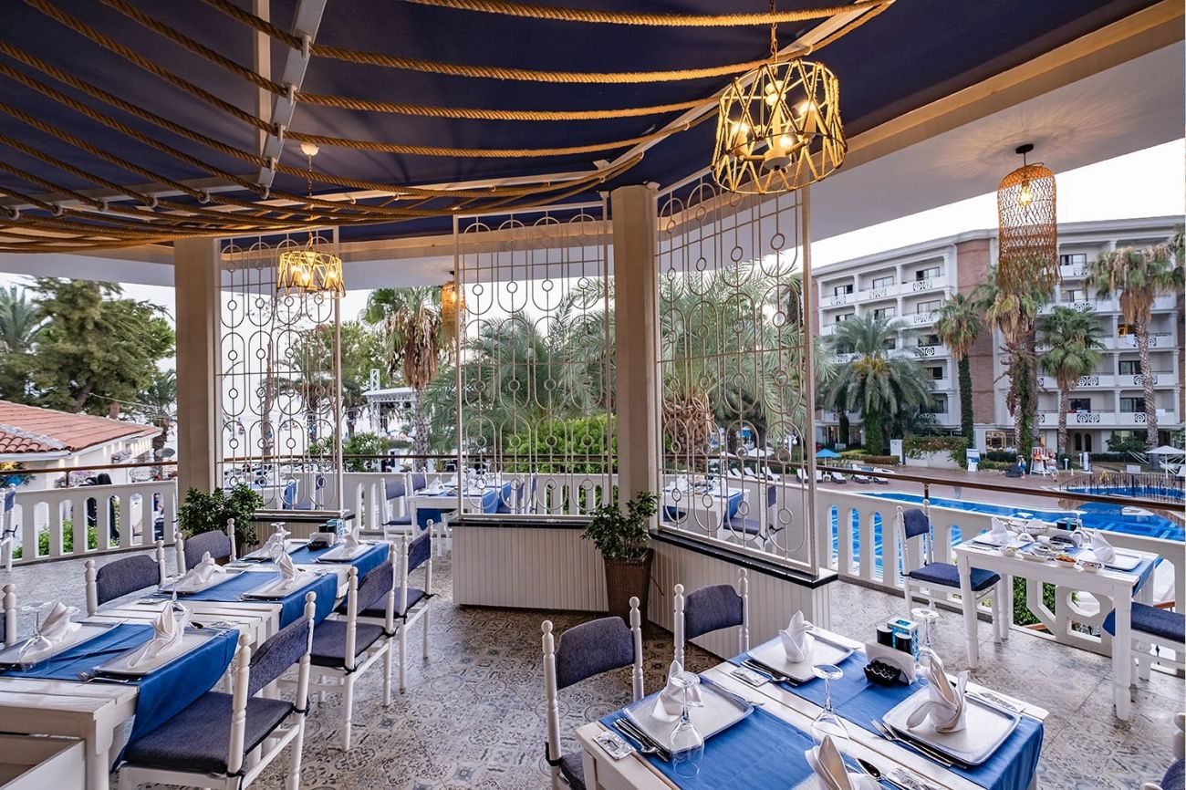 Намира се на 92 км от летище Анталия, на 99 км от центъра на Анталия, на 22 км от центъра на Алания, на брега на морето. Построен 1995 г., на обща площ от 54 000 м2. Реновиран 2021 г.