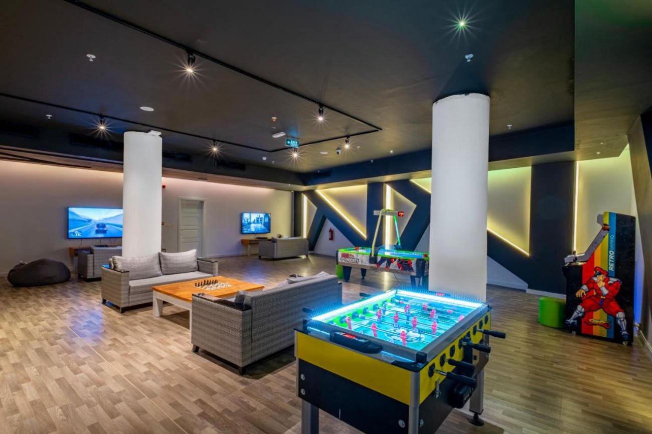 1 основен ресторант, а-ла-карт ресторант BISTRO TERRAZZA (24/7, интернационална кухня, без доплащане), ресторант THE WHITE LOUNGE (интернационална кухня, с предварителна резервация), сладкарница, 3 бара, 2 отрики и 1 закрит басейн, 4 водни пързалки, СПА център, фитнес, конферентна зала.