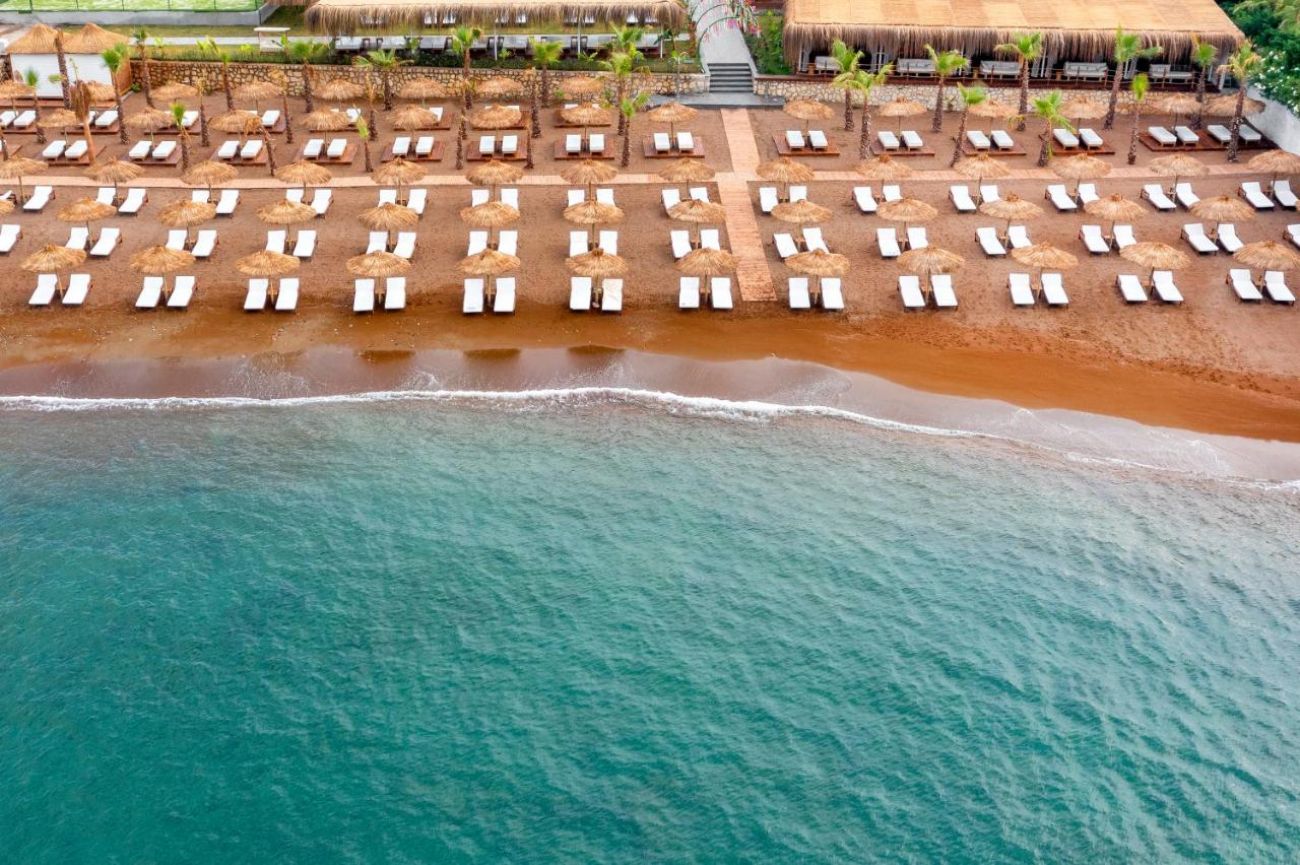 Собствен, пясъчен, платформа. Чадъри, шезлонги, матраци и плажни кърпи на плажа и при басейна - безплатно.