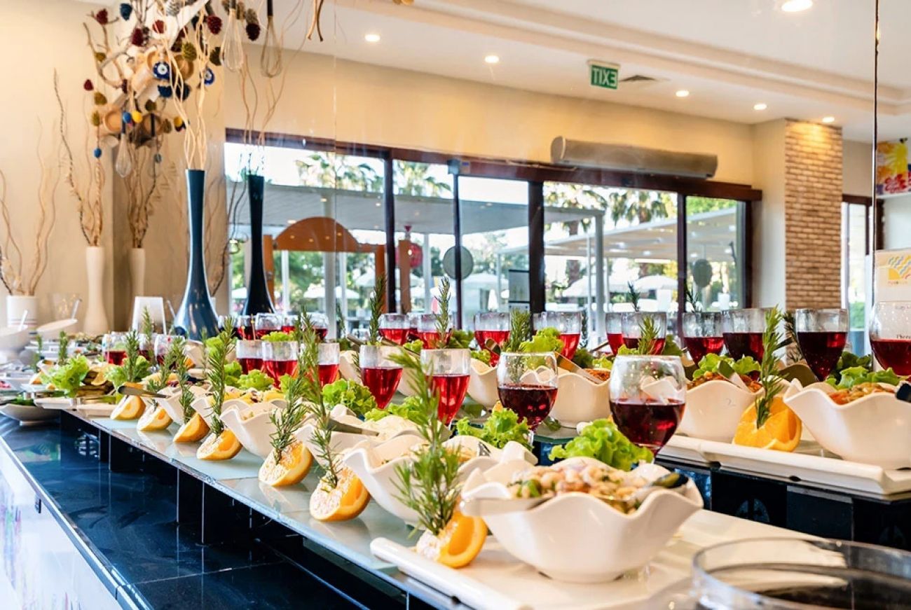 Основен ресторант, 1 а-ла-карт ресторант (Grill Restaurant – 1 безплатно посещение при минимум 7 нощувки, с предварителна резервазия), снек бар, гюзлеме корнър, тематични вечери, 7 бара, 2 открити и 1 закрит басейн, 2 водни пързалки, дискотека, СПА център, конферентна зала, Wi–Fi (в лоби). За децата: Детски открит басейн, мини клуб, детска площадка, детско столче в ресторанта, детегледачка (срещу заплащане). Безплатни услуги: Сауна, турска баня, парна баня, фитнес, тенис корт, тенис на маса, баскетбол, боча, плажен волейбол, водна гимнастика, мини футбол, дартс, лека анимация. Платени услуги: Масаж, химическо чистене, лекар, фотограф, магазини, осветление за тенис корт, водни спортове, рент-а-кар. Плаж: Собствен, на 70 м. от хотела (през път), пясъчно-чакълест. Чадъри и шезлонги на плажа и при басейна – безплатно. Плажни кърпи – срещу депозит.