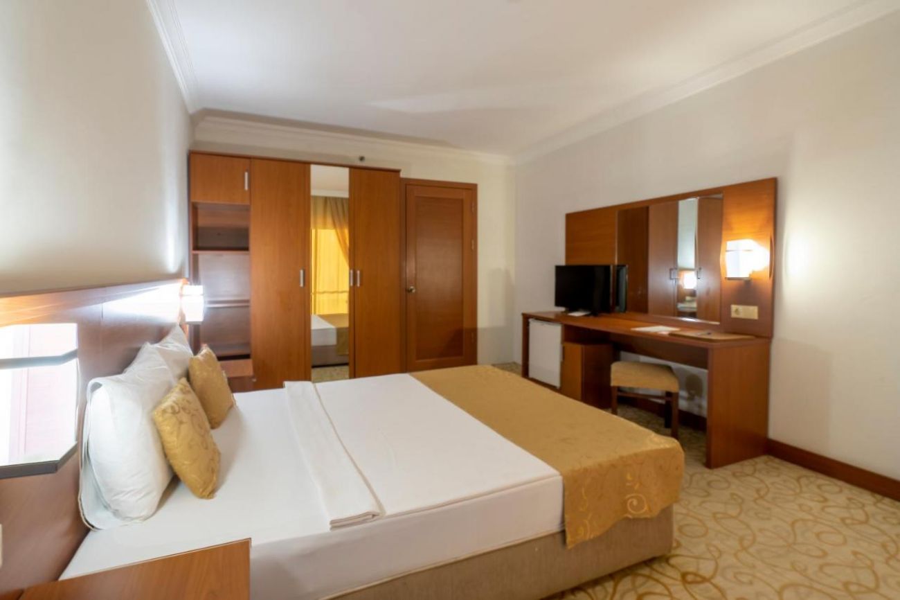 Основен ресторант, 3 бара, 1 открит басейн, 2 водни пързалки, 1 конферентна зала. За децата: Детски басейн, мини клуб (4-12), детска площадка. Безплатни услуги: Сауна, турска баня, фитнес, лека анимация, гимнастика, тенис на маса, дартс, водно полo. Платени услуги: Масаж, фотограф, химическо чистене, магазини, лекар, водни спортове, рент-а-кар, интернет.