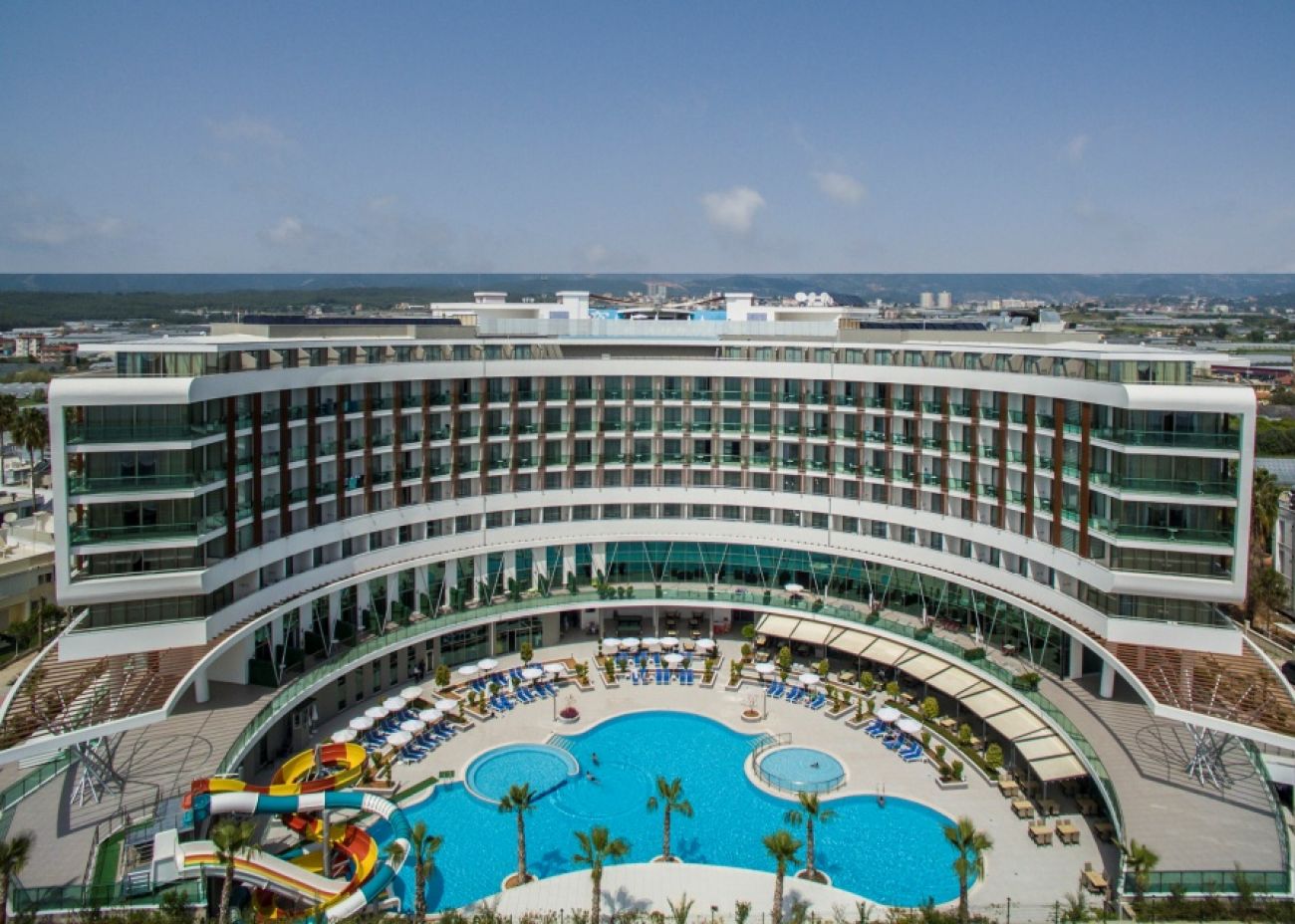 Основен ресторант, 1 а-ла-карт ресторант (рибен/турски – 1 безплатно посещение при минимум 7 нощувки), снек ресторант, сладкарница, 5 бара, 2 открити и 1 закрит басейн, аквапарк, амфитеатър, СПА център, 2 конферентни зали.