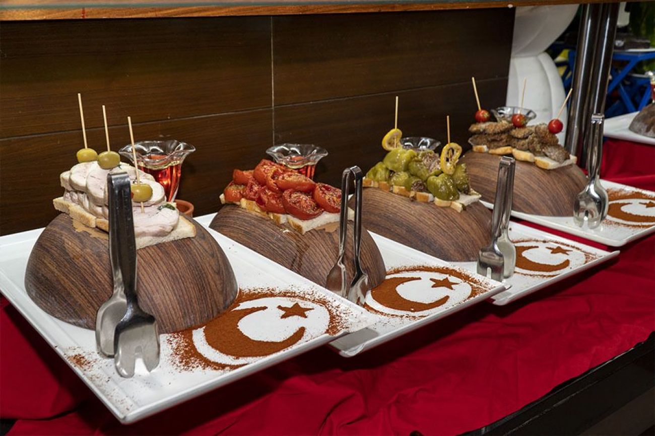 Основен ресторант с капацитет 450 места, външен ресторант - 250 места, снек бар, 2 Ала карт ресторанта -рибен и турски - с предварителна резервация. Лоби бар, бар на плажа, сладкарница, дискотека, 2 открити басейна и 1 закрит.