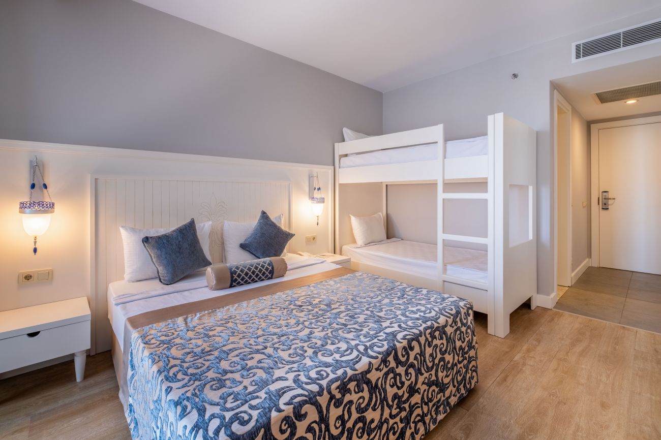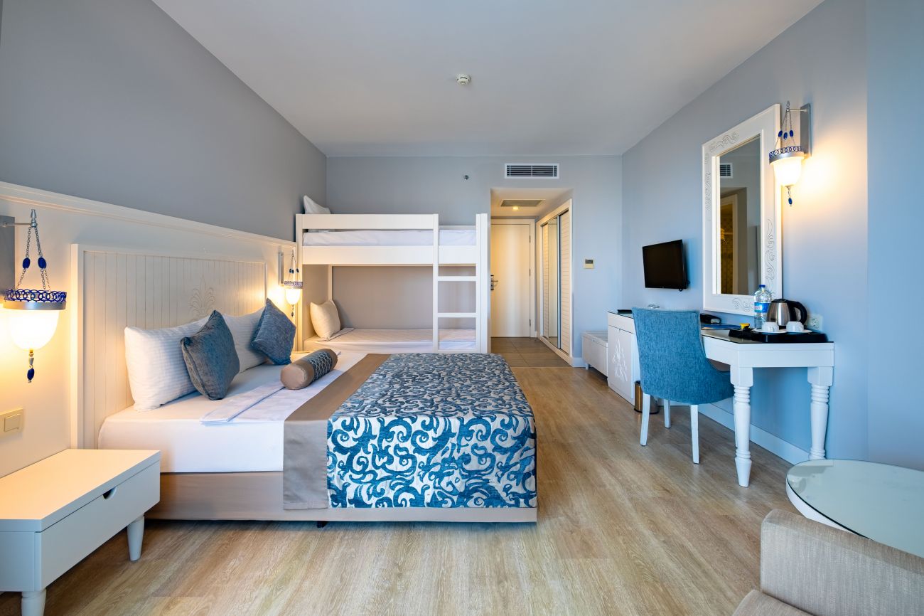 Основен ресторант, 4 а - ла - карт ресторанта (рибен, турски, италиански и китайски, с предварителна резервация, за едноседмичен престой - едно безплатно посещение на един ресторант), сладкарница, 6 бара, 2 открити и 1 закрит басейн, водни пързалки, амфитеатър, дискотека, мини маркет, 4 конферентни зали. За децата: 2 детски басейна – открит и закрит, мини клуб (4-12 г.), тийни клуб (11-15г.) – 6 дни в седмицата, детска анимация, лунапарк. Безплатни услуги: Сауна, турска баня, аеробика, дартс, тенис на маса, степ, боча, плажен волейбол, анимация, Wi-Fi (в лоби). Платени услуги: Масаж, Спа център, лекар, фризьор, рент-а-кар, химическо чистене, боулинг, билярд, интернет, електронни игри, водни спортове, фрешове на плажа. Плаж: Собствен - пясъчен, удостоен със сертификат „Син флаг”. Чадъри, шезлмонги, матраци и плажни кърпи на плажа и при басейните - безплатно.