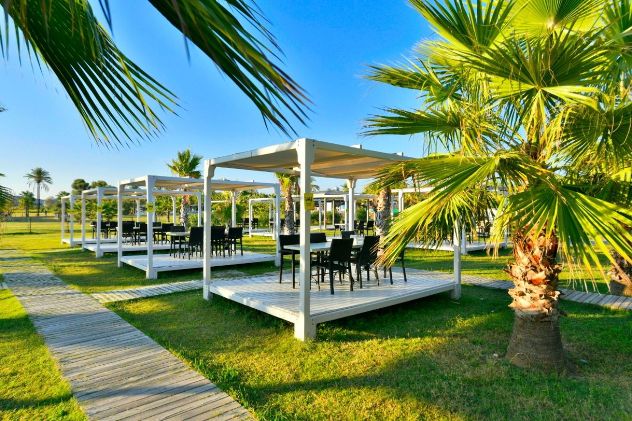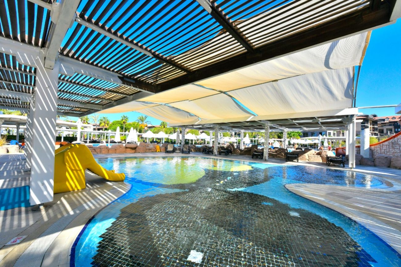 Основен ресторант, 3 а-ла-карт ресторанта (рибен, италиански, турски), 6 бара, 5 открити басейна, 1 закрит басейн, 1 басейн с пързалки за възрастни, 1 с пързалки за деца, Wi-Fi, Спа център.