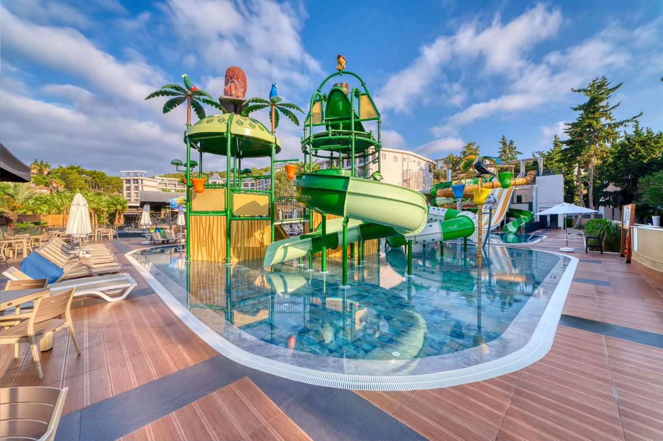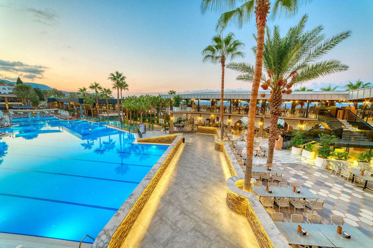 Хотелът се намира на на 120 км от летището на гр. Анталия, на 10 км от гр. Алания, на 3 км. от Конаклъ, на брега на морето. Изцяло реновиран за сезон 2024.