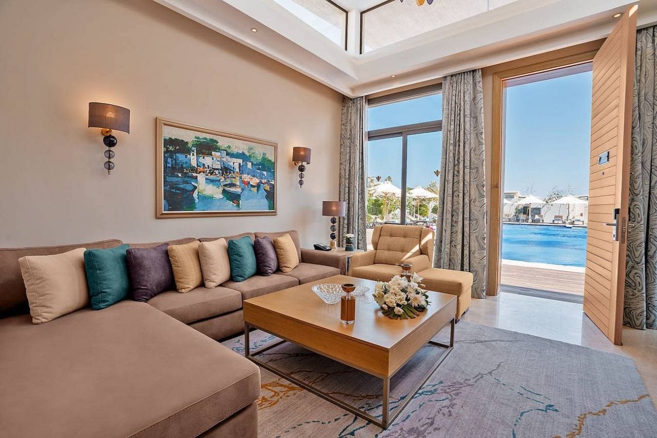 Хотелът разполага с общо 410 стаи. Suite Garden View, Suite Sea View (53-73 м2), Superior Suite (Sea & Pool View, последен етаж, 140 м2), Executive Family Suite (Sea View, последен етаж, 170 м2, хол + 2 спални), Lagoon Deluxe Suite (Sea & Pool View, последен етаж, 130 м2, хол с маса за хранене + спалня), Lagoon Swim Up Suite (Sea & Pool View, първи етаж, 130 м2, хол с маса за хранене + спалня), Pool Villa (Pool & Garden View, 105-129 м2, хол с маса за хранене + спалня с баня и тераса), Executive Pool Villa (Pool & Garden View, 240 м2, луксозна и напълно обзаведена вила с една спалня, една стая с две единични легла и една единична спалня, 3 бани, хол, трапезария, голяма тераса), Royal Villa (Sea & Pool View, 944 м2, луксозна и напълно обзаведена вила с 2 двойни спални и 2 стаи с 2 единични легла, една стая за иконом и хол, 4 бани, напълно оборудвана кухня, кът за хранене и камериерска стая, 4 минибара, голяма тераса, личен иконом). Всички стаи са оборудвани с климатик, телевизор, телефон, баня с душ/ вана, сешоар, меню на възглавници, кафемашина, минибар, сейф (безплатно), услуги на иконом (не във всички стаи), избор на възглавници, Wi-Fi. Почистване на стаите и смяна на кърпите - всеки ден, смяна на спално бельо – всеки ден.