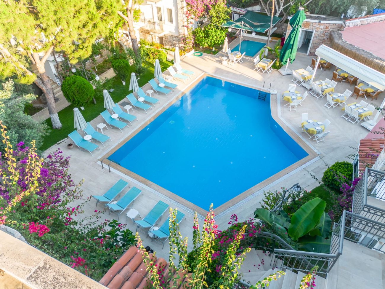 Намира се на 35 км от летище Бодрум, в центъра на Бодрум, на 350 м от брега на морето. Частично реновиран 2014 г.