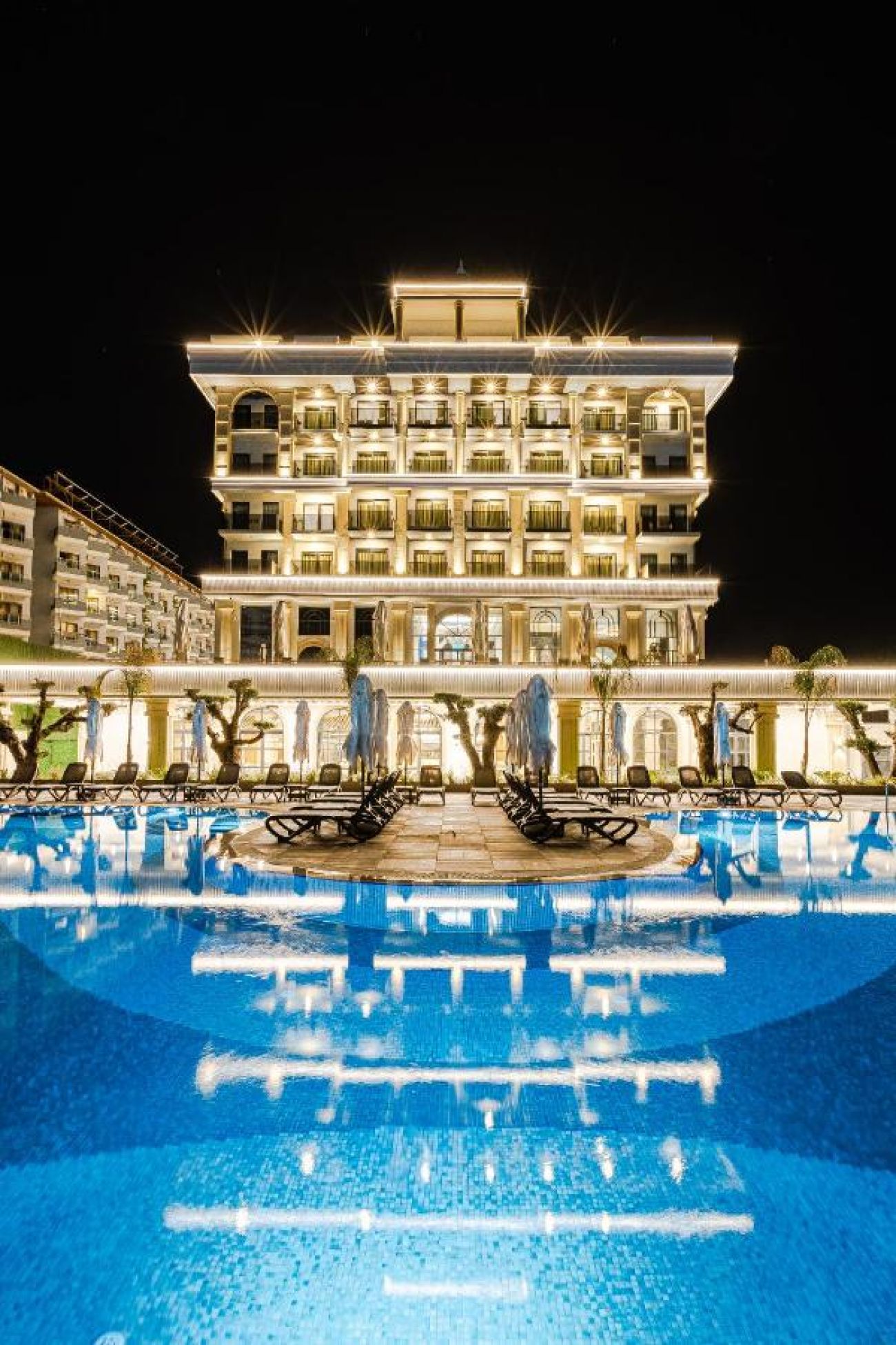 Основен ресторант, 1 а-ла-карт ресторант (интернационален - 1 безплатно посещение при 7 -дневен престой с предварителна резервация), 2 снек бара, 1 сладкарница, Starbucks Coffee Shop, 10 бара ( 1 от които 24 часа), 1 открит басейн, 1 релакс басейн +16, 1 вътрешен басейн, аквапарк с 3 пързалки.