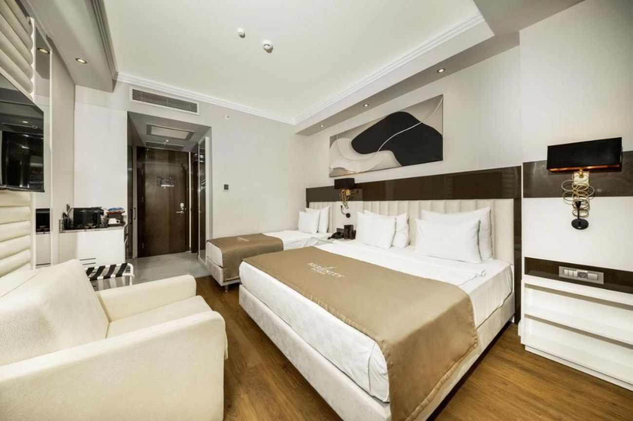 Всички стаи са оборудвани с климатик, телевизия, сейф (безплатен), мини бар (безплатен) - eжедневно зареждане с безалкохолни напитки, бира и вода, баня и тоалетна, тераса / балкон.