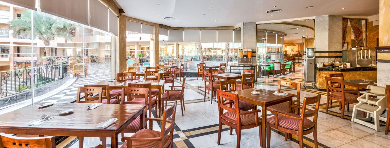 Основен ресторант, 3 а-ла-карт ресторанта (италиански - 1 посещение седмично, безплатно сет меню с предварителна резервация), рибен (платен), грил до басейна (платен за обяд, безплатен снакс), пица снек бар (платен), 6 бара (3 платени), 2 открити басейна (1 отопляем през зимата), СПА център, конферентна зала, магазини.