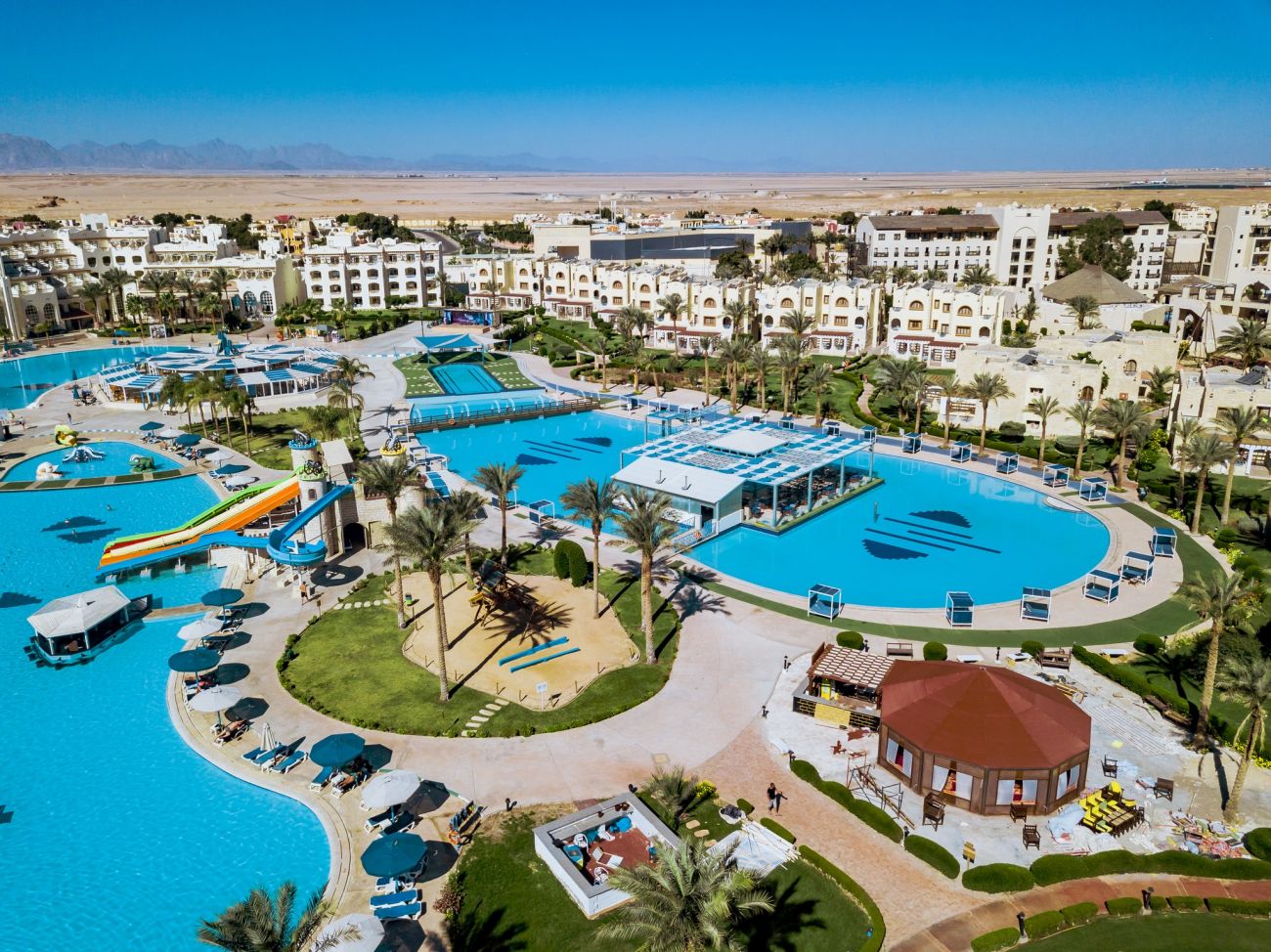 Основен ресторант, а-ала-карт ресторант, 3 бара, открит басейна с 5 пързалки, конферентна зала, СПА център, паркинг, магазини, Wi - Fi (в лоби). За децата: детски басейн, мини клуб (4-12г.), детска площадка. Безплатни услуги: Тенис на маса, фитнес, водна гимнастика, аеробика, боча, дартс, плажен волейбол, анимация. Платени услуги: сауна, парна баня, турска баня, масаж, пилинг, джакузи, салон за красота, тенис на корт, билярд, моторни водни спортове, дайвинг, уиндсърфинг.