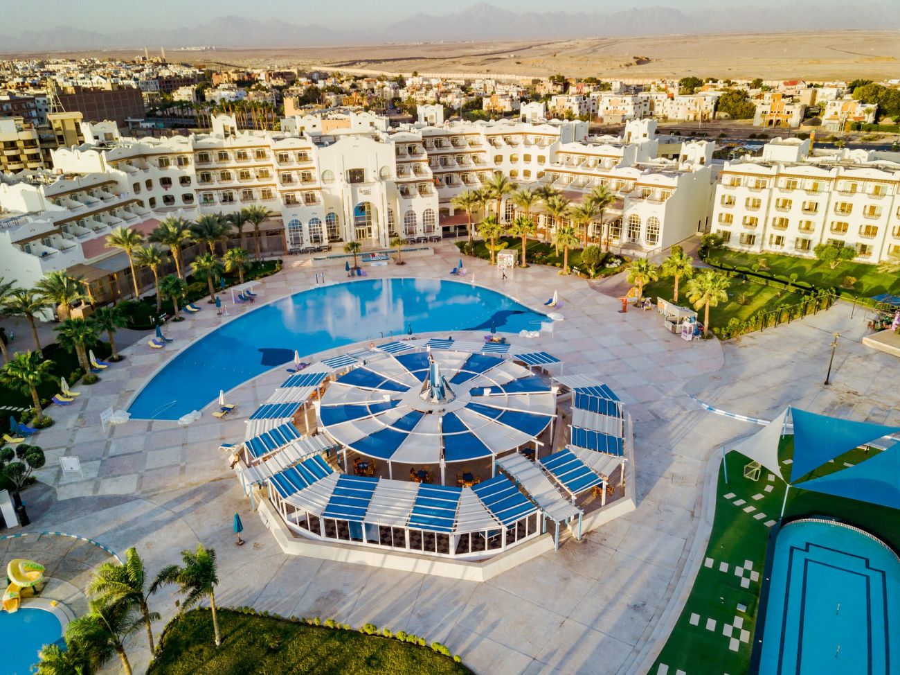 Хотела се намира на 4 км от летището в Хургада, на 11 км от центъра на града, на втора линия. Хотелът е открит през 2007 год. Последна реновация е направена през 2016 год.