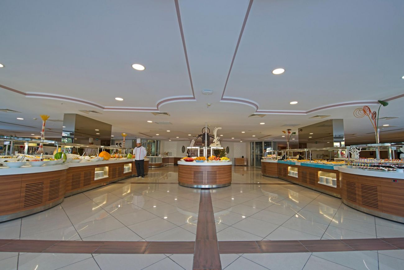 Основен ресторант, а-ла-карт ресторант (интернационална кухня - платен), 6 бара, 3 открити басейна ( 1100 м² и 650 м² )и 1 закрит басейн, аквапарк, магазини, СПА център. За децата: водни пързалки, 2 детски басейна, детска площадка, мини футбол, мини диско, мини клуб,(4-12г.) Безплатни услуги: сауна, турска баня, парна баня, фитнес, аеробика, баскетбол, волейбол, водна гимнастика, тенис на корт, тенис на маса, анимация, WI-FI интернет в лоби. Платени услуги: масаж, център за разкрасяване, пералня, химическо чистене, лекар, джакузи, оборудване за тенис корт, билярд, интернет кафе. Плаж: Собствен плаж в Ичмелер, на 3.5 км. от хотела. Безпатен шатъл до плажа в Ичмелер. Чадъри и шезлонги на басейна – безплатни и на плажа – безплатни. Не се предоставят плажни кърпи.