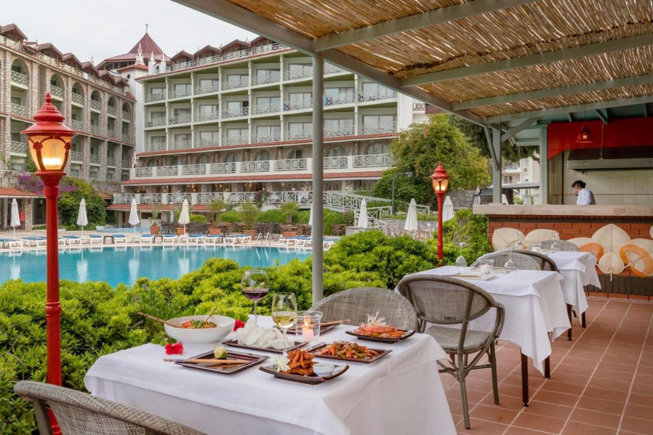 Хотелът се намира на 139 км. от летище Милас, на 103км от летище Даламан, на 8 км. от центъра на Мармарис, в района на Ичмелер, на брега на морето. Построен през 1988 г. с обща площ от 5 700 м2, последно реновиран през 2014 г. Хотел за възрастни - настаняване на деца под 16 години не е позволено.