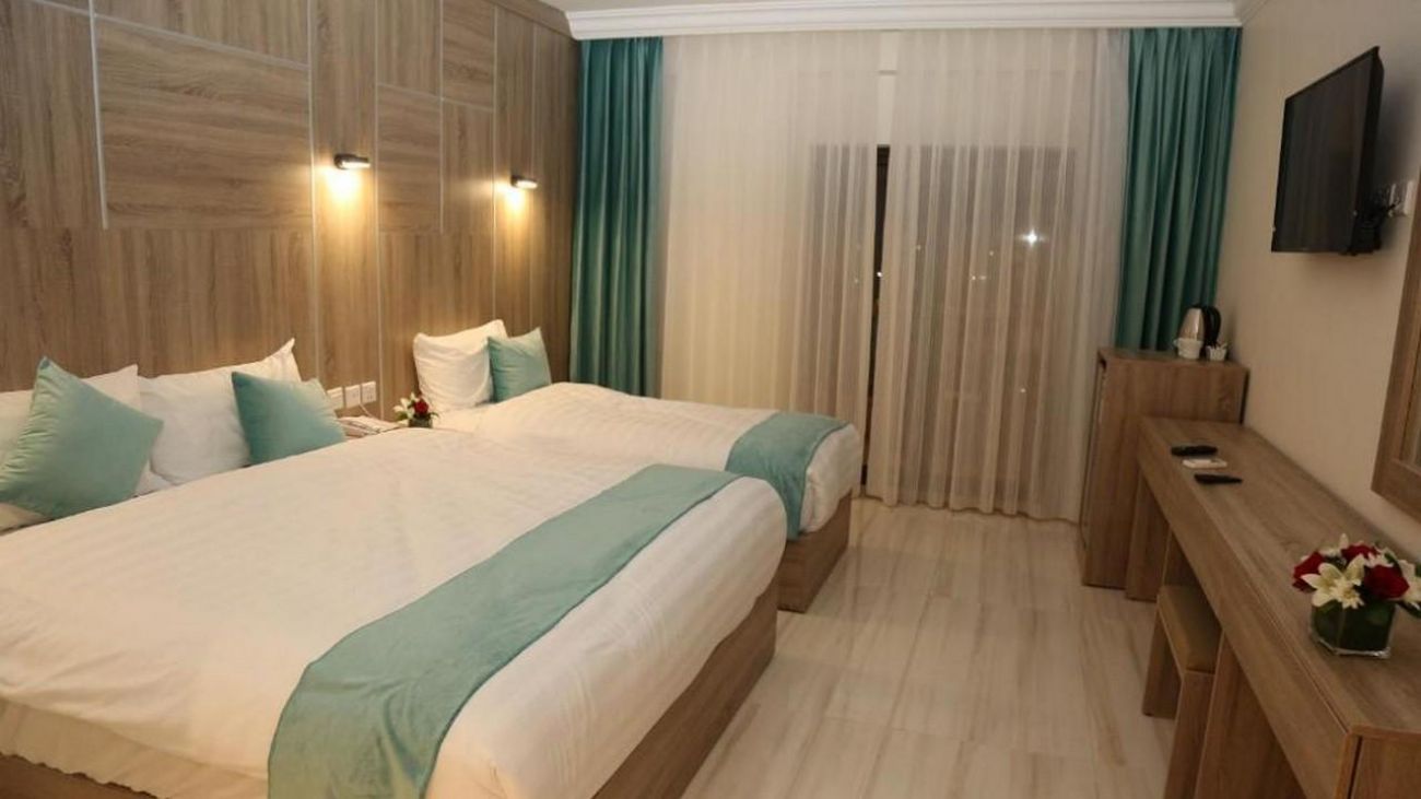 Закуска на блок маса маса. Яхт клуб Royal е на 1,1 км от хотел Turquoise, а залива Тала в Акаба е на 13 км. Международно летище „Крал Хюсеин“ е на 10 км от хотела.
