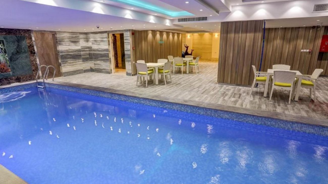 Гостите могат да ползват закрития басейн и фитнес центъра или да се насладят на изглед към града. Климатизираните стаи в хотела разполагат с бюро, електрическа кана, сейф,