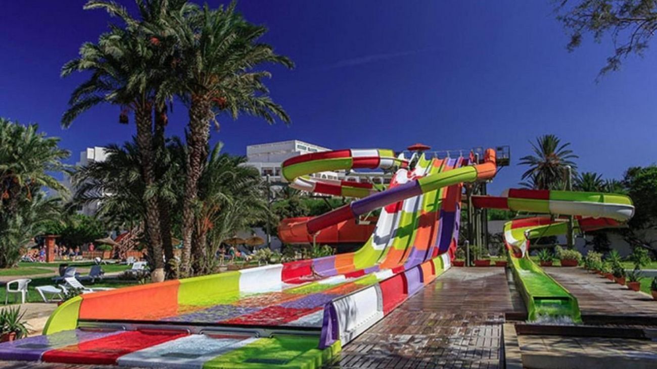 All Inclusive, няколко басейна, собствен аквапарк с водни пързалки, богата анимация, спортни терени и директен достъп до плажа. Хотелът е подходящ за семейства, особено с деца.