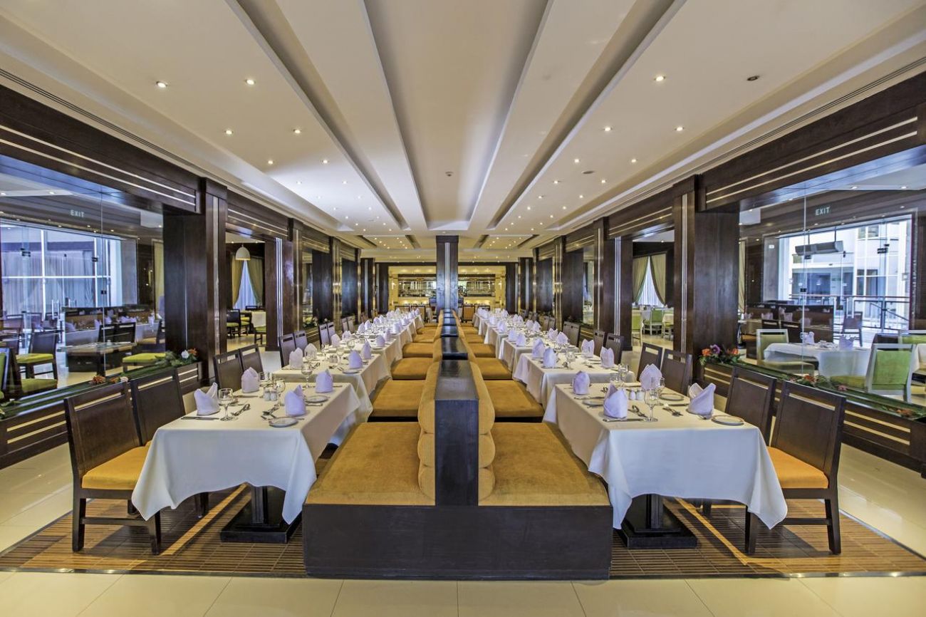 Основен ресторант, 5 а-ла-карт ресторанта (средиземноморски, индийски, гръцки, египетки, рибен - срещу заплащане/с предварителна резервация, съгласно концепцията на хотела), 8 бара, 2 открити басейна (1 отопляем през зимата), конферентни зали, СПА център, бизнес център, дискотека, банкомат, магазини.
