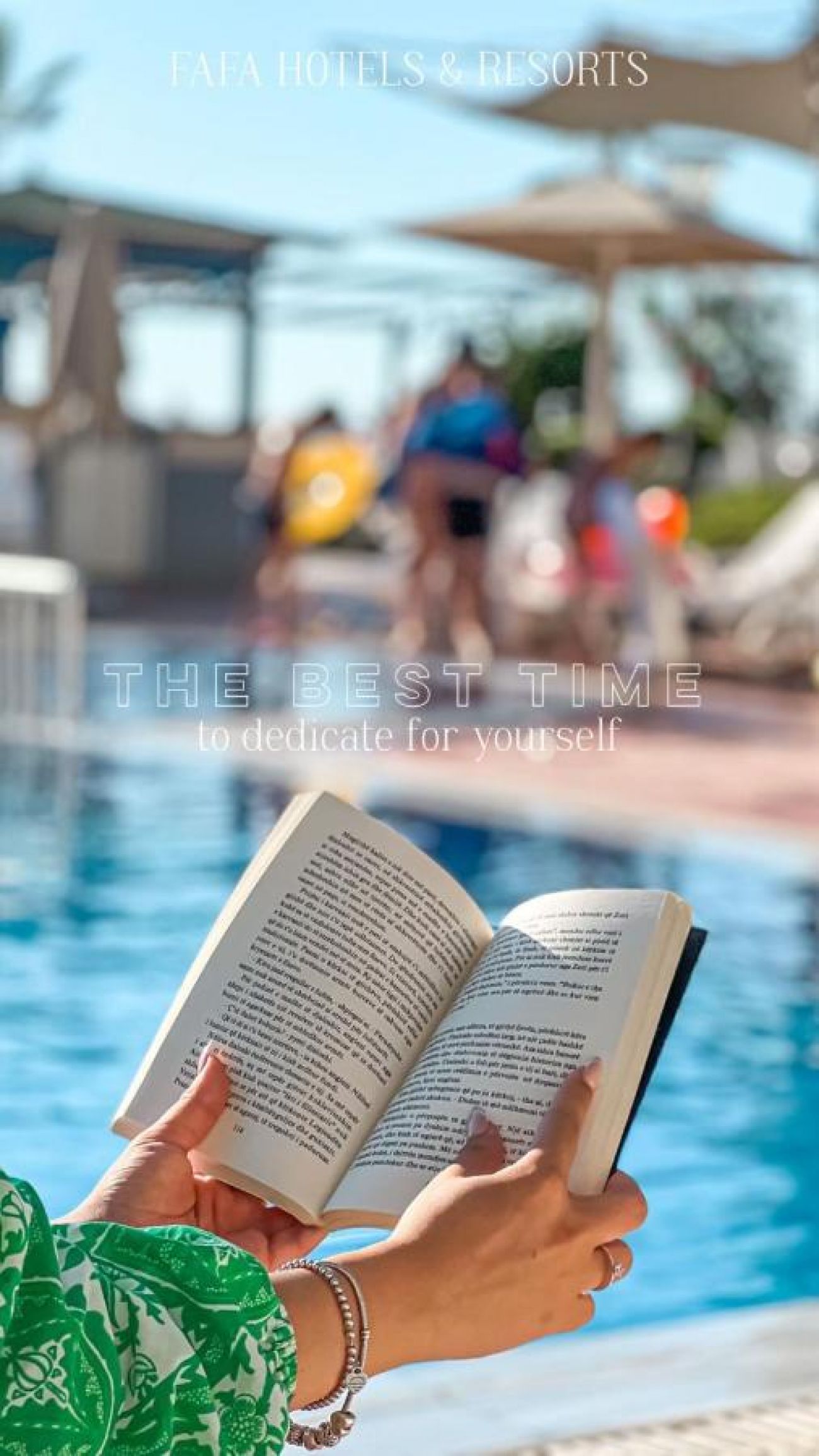 Основен ресторант, а-ла-карт ресторант (платен), бар на басейна (безплатен), бар на плажа (платен), лоби бар (платен), два открити басейна, отделна детска секция и детски басейни в съседния хотел Grand Blue Fafa, плажен волейбол, йога, тенис на маса мини клуб, детска площадка и стая за игра за деца, целодневна анимация за възрастни и деца.