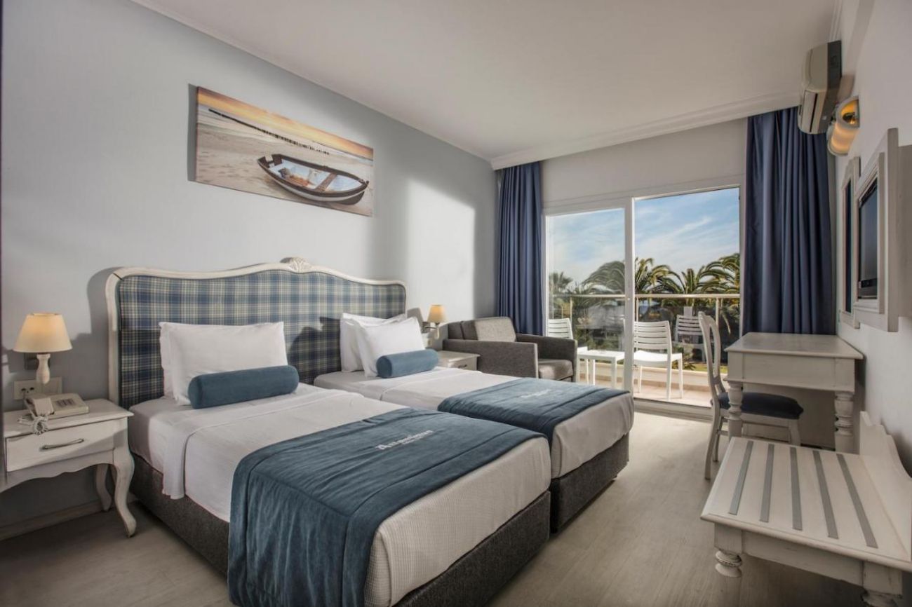 Хотелът разполага с 354 стаи, от които 250 стандартни стаи с изглед градина или с изглед море (20-23 кв.м), 68 фамилни стаи (две свързани помещения и с две бани, 44-46 кв.м.), 30 стандартни стаи с джуетажни легла (23 кв.м), 4 апартамента (спалня, всеоткриткидневна, баня с джакузи, 44 кв.м) и 4 стаи за инвалиди. Всички стаи са оборудвани с климатик, телевизор, телефон, баня с душ, сешоар, сет за чай/кафе, минибар (безплатен), сейф (безплатен), балкон или тераса, Wi-Fi интернет. Почистване на стаите – всеки ден, смяна на бельото – 2 пъти в седмицата, смяна на кърпите – 3 пъти в седмицата.