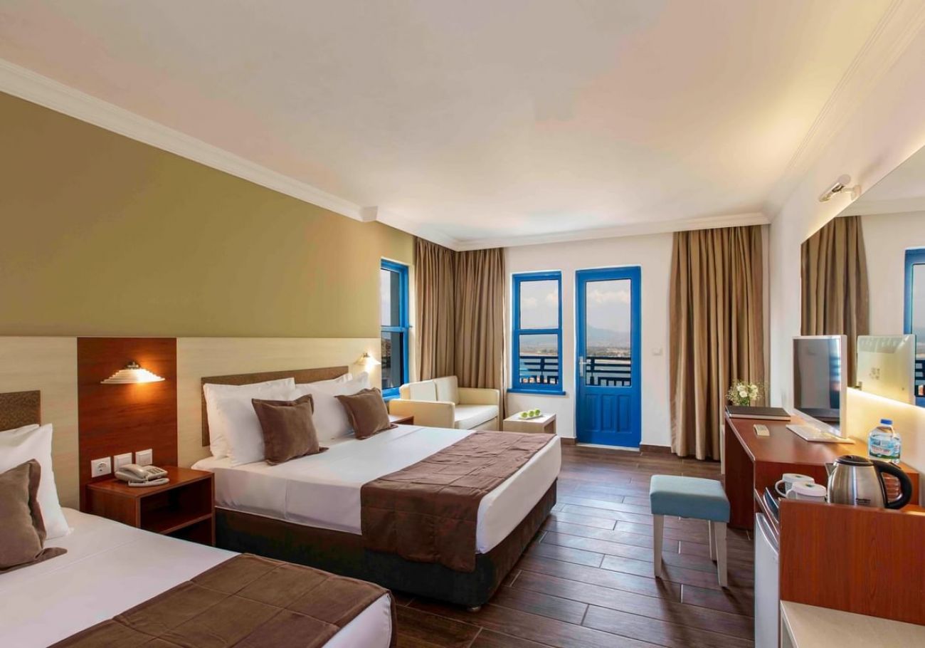 Намира се на 75 км от летище Измир, на 140 км от летище Милас, на 9 км от центъра на Кушадасъ, на брега на морето. Частично реновиран през 2014 г.