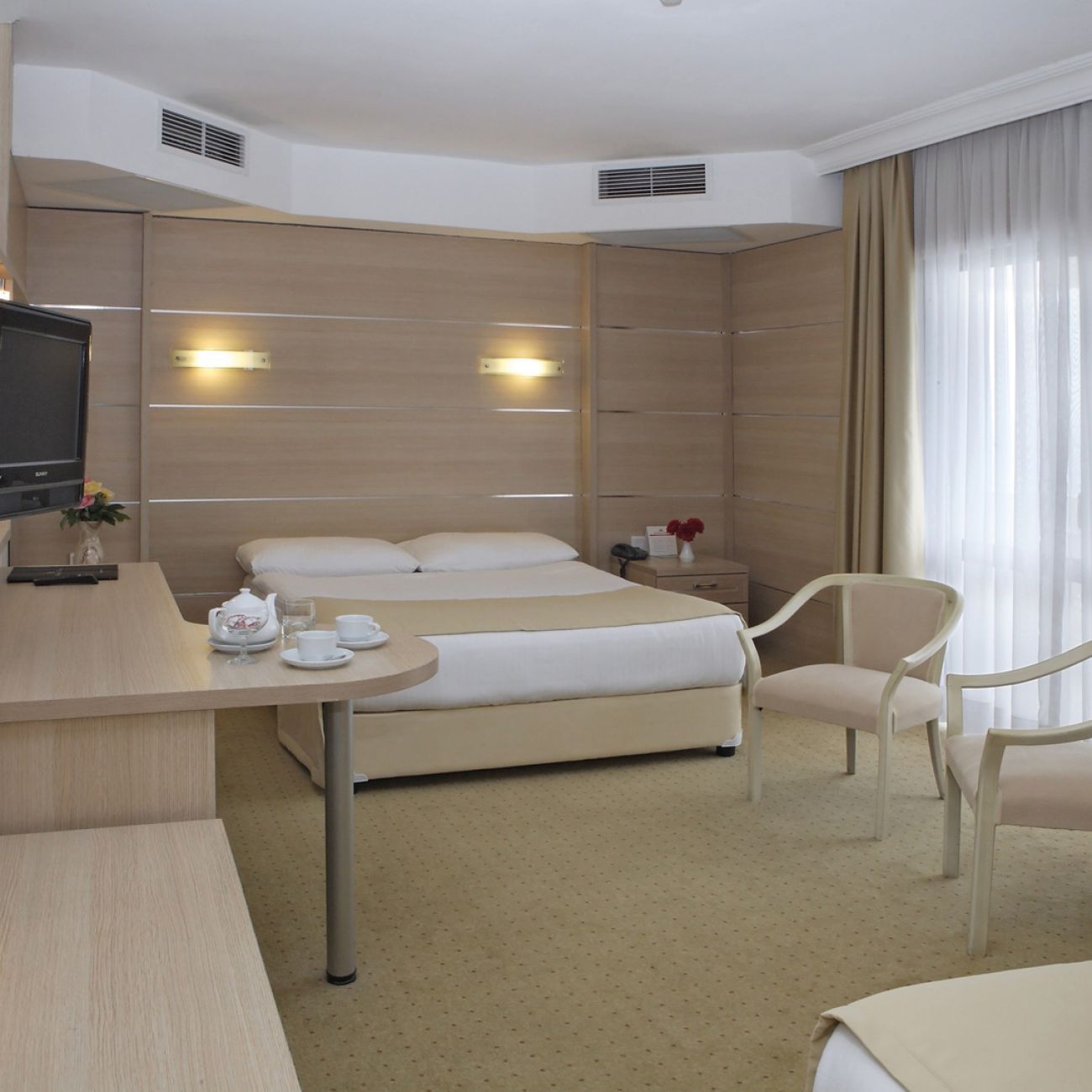 Хотелът се състои от 275 стаи. Всички стаи са оборудвани с климатик, телевизор, телефон, минибар (платен), баня с вана или вана, сешоар, балкон, сейф (безплатен).