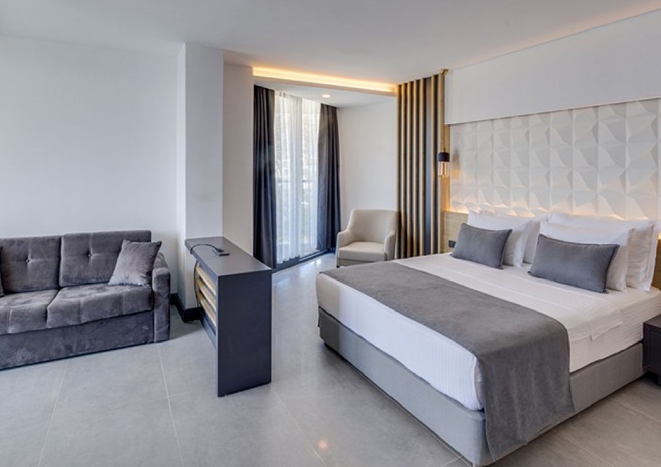 Хотелът разполага с 111 стаи с модерен дизайн, от които 91 deluxe room (22 кв.м, с изглед море), 6 junior suite (30кв.м), 6 corner room (24 кв.м), 1 King Suit (1 спалня, 1 хол, 35 кв.м), 7 promo room (22 кв.м, без изглед море), всички оборудвани с климатик, телевизор, сешоар, телефон, баня с душ / вана, сет за чай / кафе, мини бар, сейф, Wi-Fi, балкон или тераса. Почистване на стаите - всеки ден.