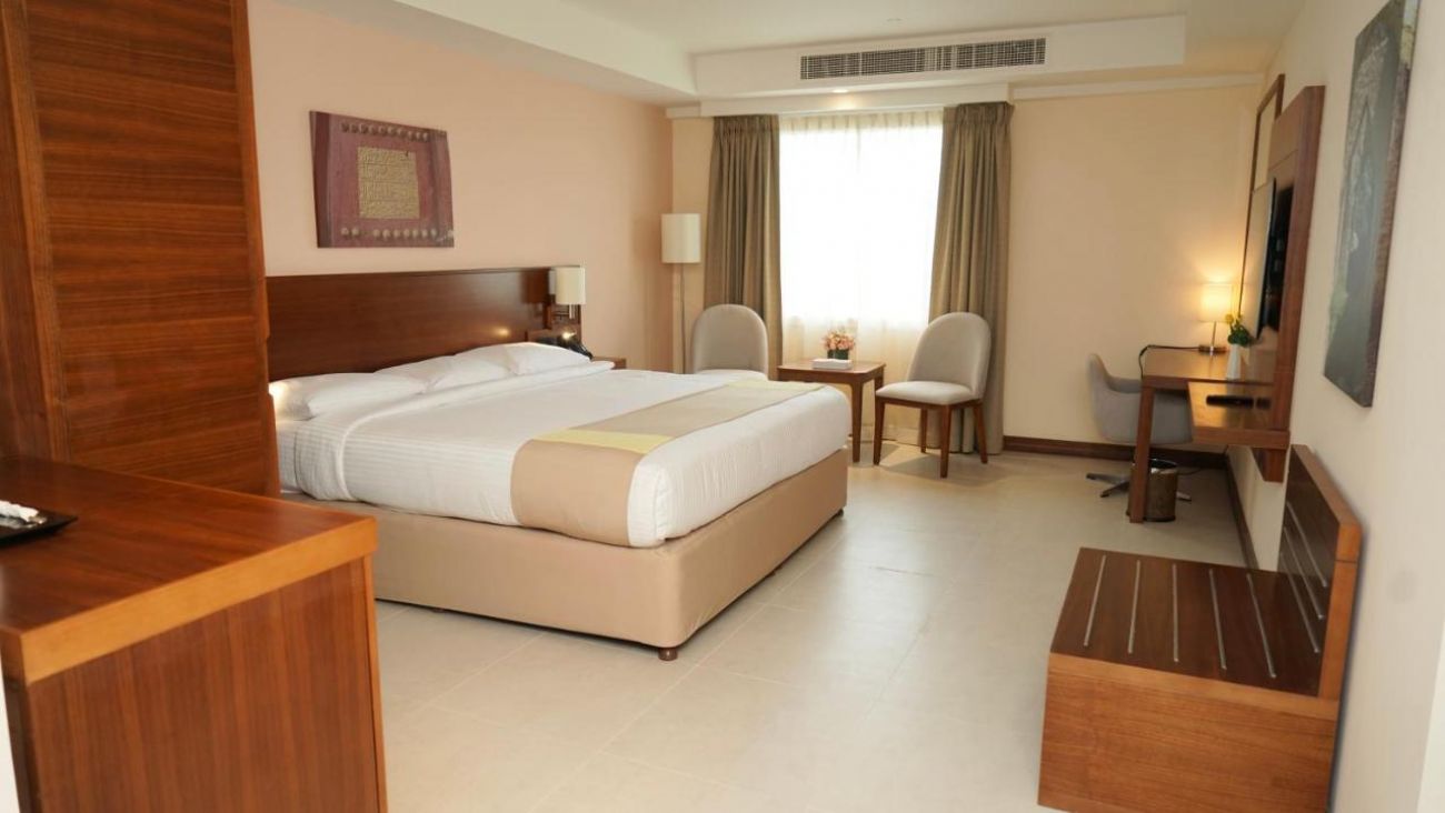 Хотелът разполага със Standard room (30 кв.м), Deluxe Room (22 кв.м), Junior Suite (68 кв.м), Superior room (68 кв.м). Всички стаи са оборудвани с климатик, телевизор, баня с вана/душ, мини бар, сет за кафе/чай, сейф, кът за сядане.