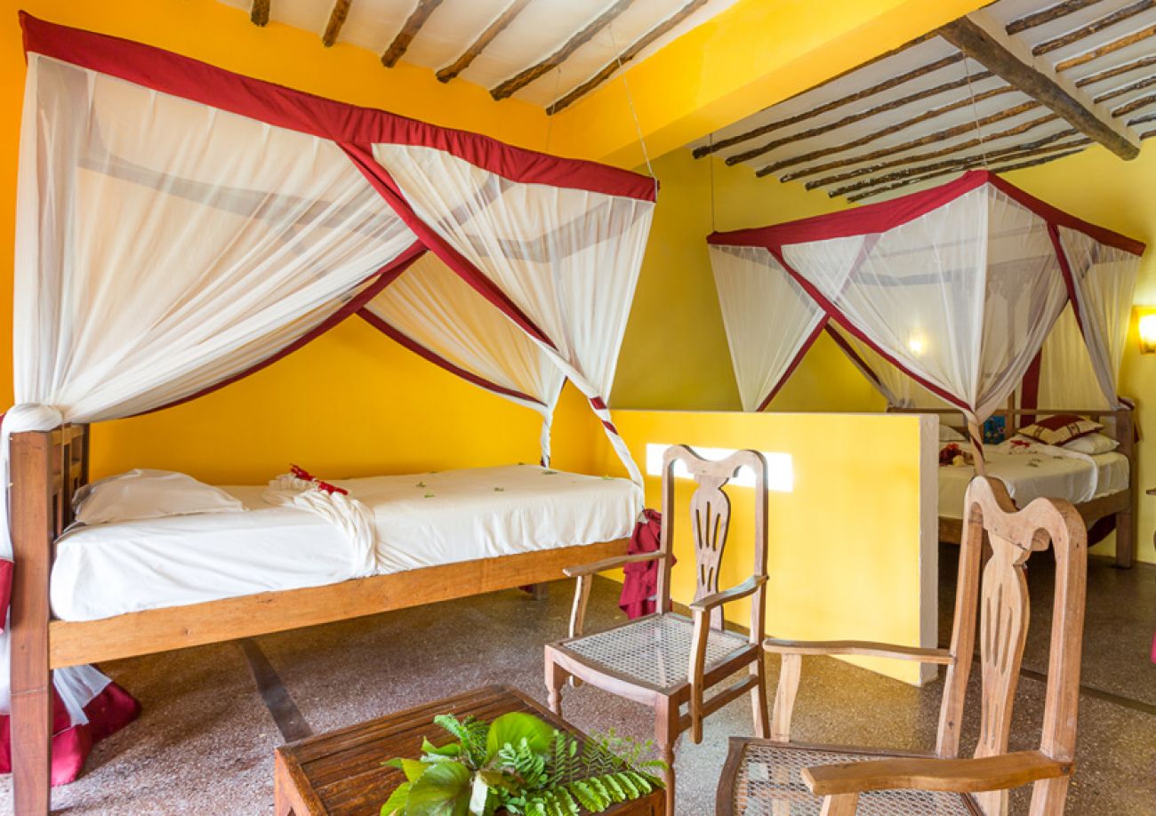 Хотелът разполага с 62 стаи: стая класик (30 кв.м, разположени на първи етаж), Garden/Sea View Bungalow (25 кв.м), фамилна стая (40 кв.м, разположени на втори етаж), Sultan suite (40 кв.м., разположен на приземен етаж), Waridi suite (60 кв.м, разположен на два етажа).