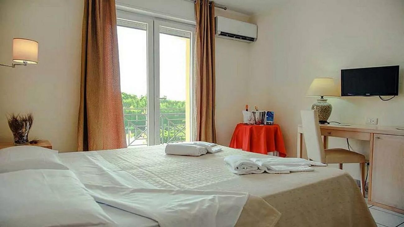 Хотелът предлага на своите гости 146 елегантни и удобни стаи, които могат да настанят от двама до петима души, разположени в два корпуса, в двуетажни сгради с асансьори. Всички стаи са оборудвани със самостоятелен санитарен възел, автоматичен климатик, телефон с директна линия, сателитна телевизия, бар-хладилник (зареждане при поискване), сешоар и сейф. Всички стаи имат малка тераса, оборудвана с маса и столове, която гледа към хълма или басейна.