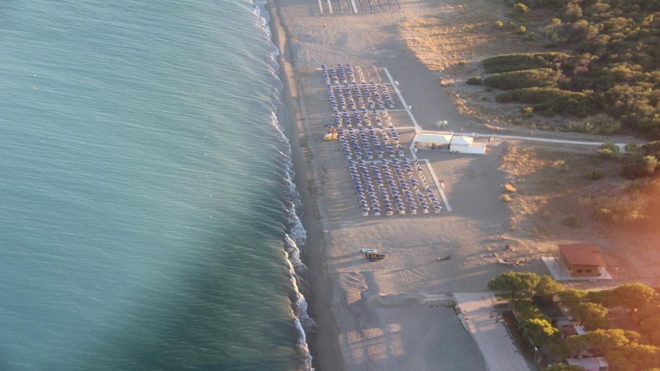 Намира се на 250 метра от хотела, може да бъде достигнат по пътеки през красива борова гора, където ще се насладите на девствената природа на Йонийско море. На разположение на гостите са 1 чадър и 2 шезлонга за стая.