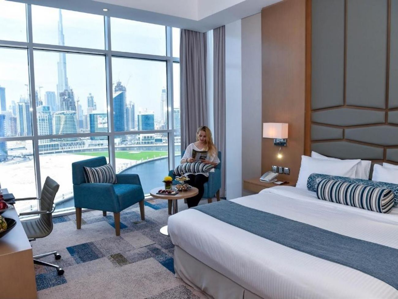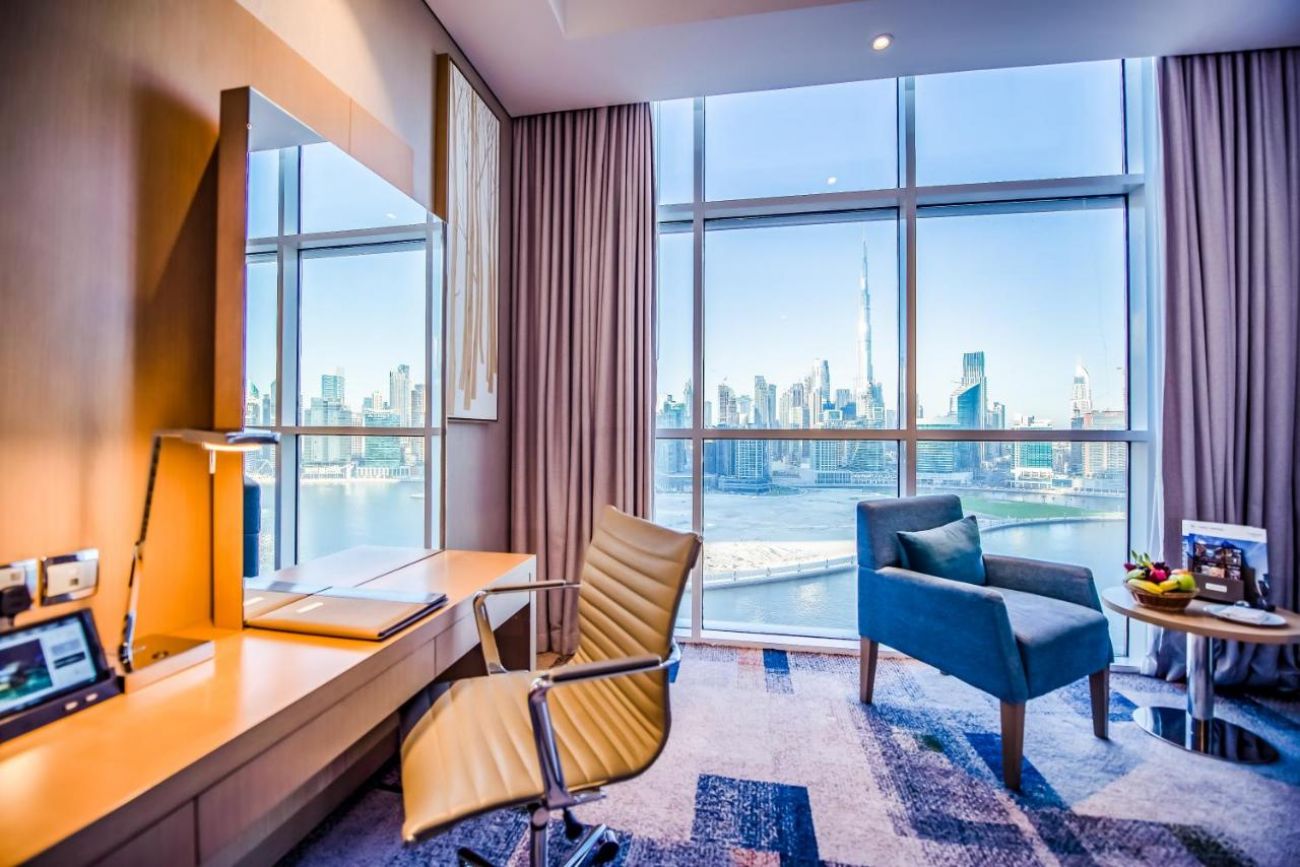 Част от стаите са с гледка към Dubai Canal и Burj Khalifa.