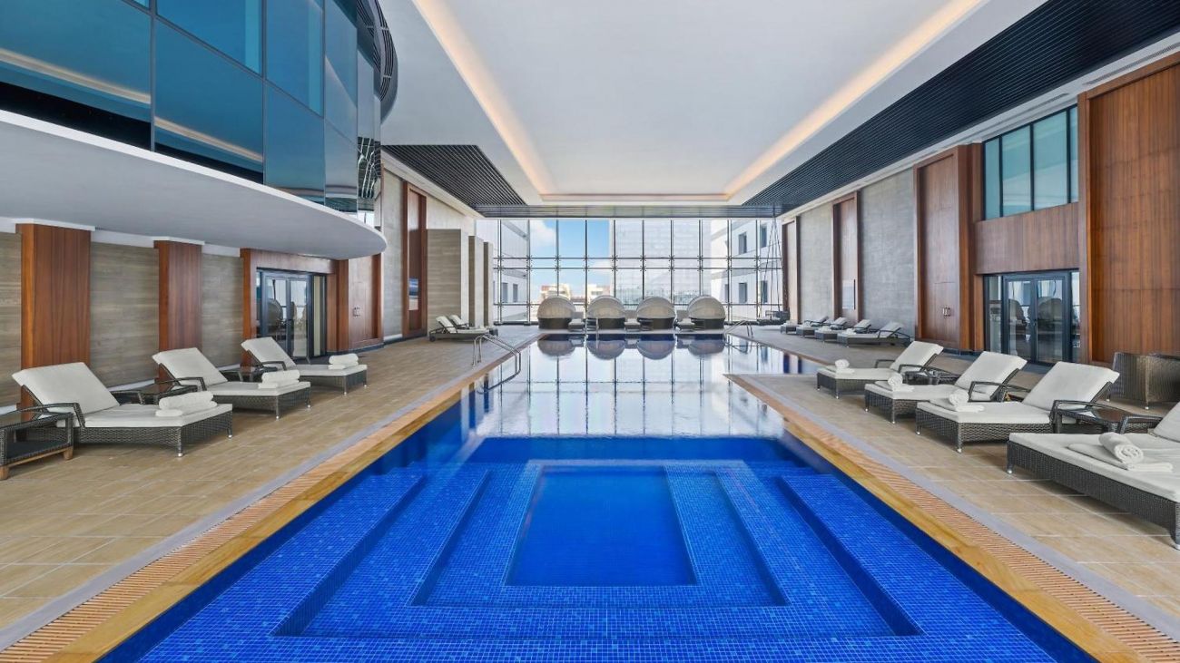 Хотелът разполага с открит панорамен инфинити басейн с регулираема температура и с гледка към ексклузивните вили на Палм Джемейра и впечатляващите небостъргачи на Дубай Марина. Закрит басейн, който се намира на 14-ия етаж на хотела и предлага невероятна панорамна гледка.