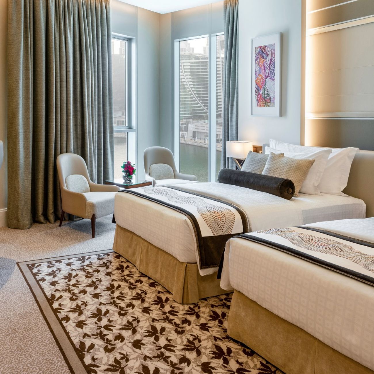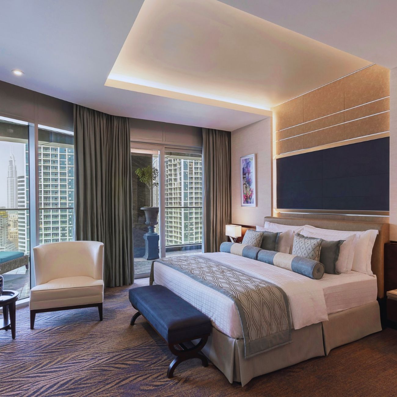 Хотелът разполага с 251 стаи, разположени между 6ти и 19ти етаж - Deluxe Room (46 кв.м.), Superior Room (43 кв.м.), Superior Room Canal View (36 кв.м.), Club Room (46 кв.м.), Junior Suite (62 кв.м.), One Bedroom Canal Suite (88 кв.м.) и Royal Suite (204 кв.м.). Всички стаи са оборудвани с климатик, телефон, сешоар, сет за чай, еспресо кафемашина, сейф, минибар (безплатен веднъж за целия престой), телевизор, Wi-Fi (безплатен).