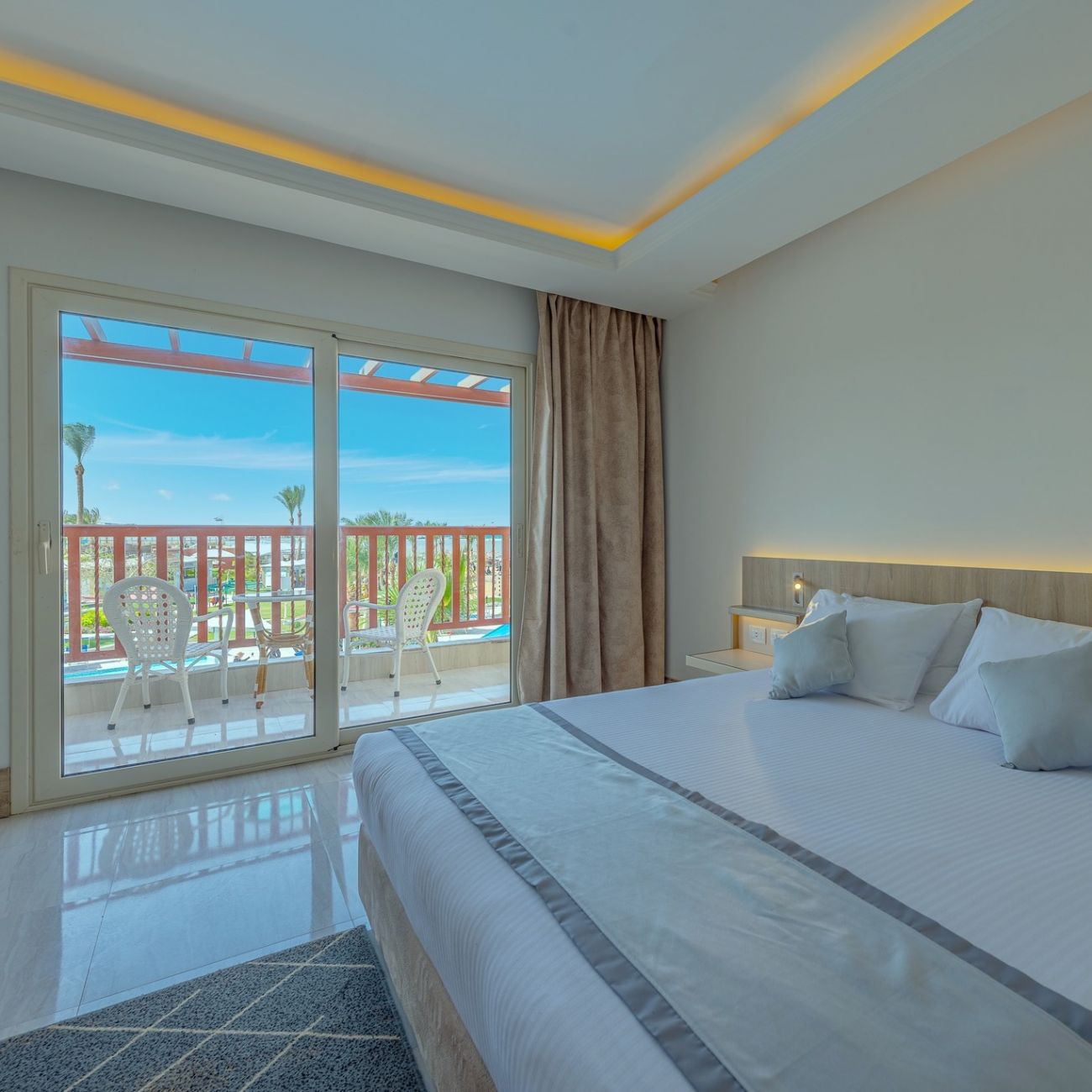 Хотелът разполага с общо 726 стаи, разположени в две 3-етажни сгради - Standard Room (40м2), Family Room (50м2), Swim up Room (40м2), Junior Suite (50м2), Executite Suite (75м2), Presidential Suite (120м2).